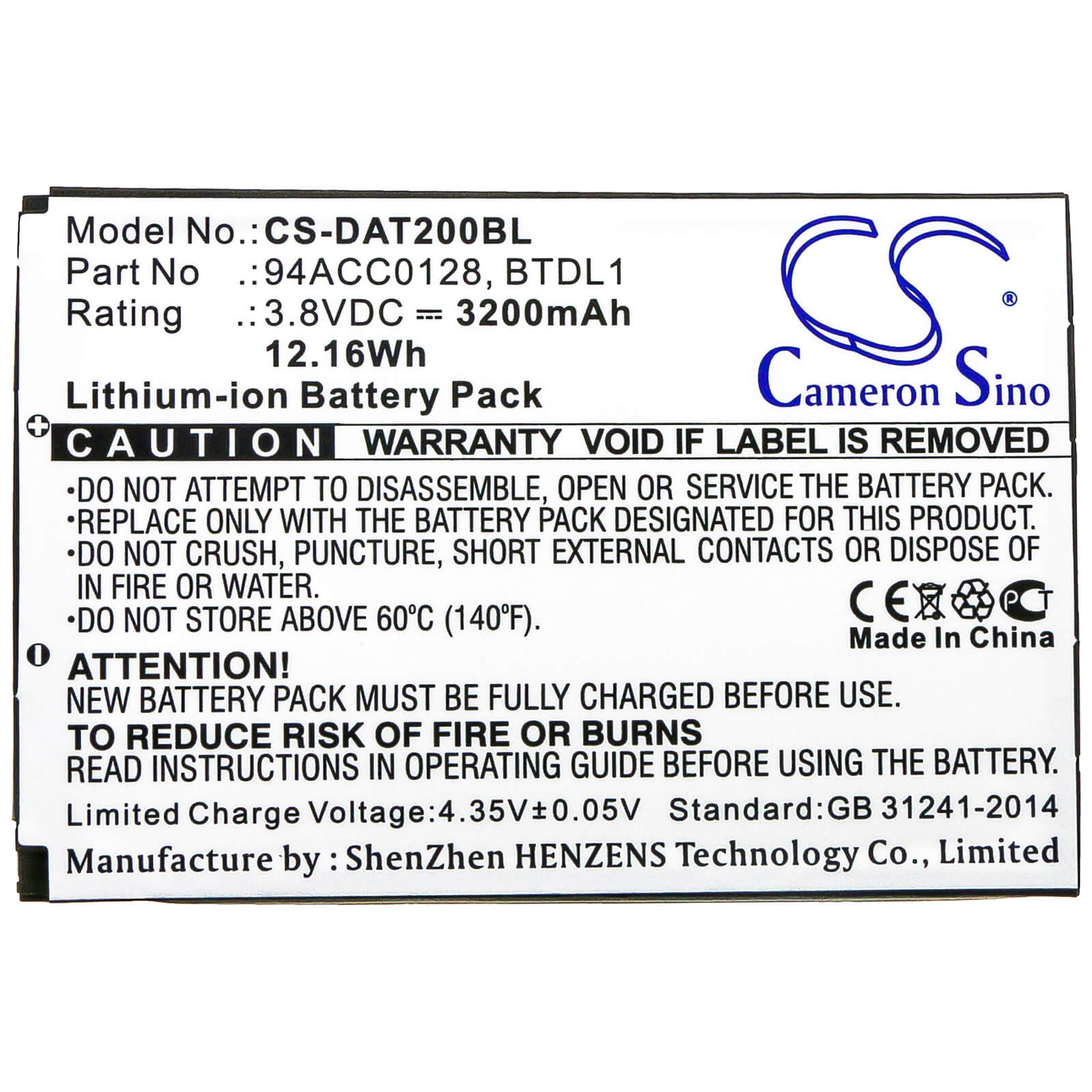Li-ion Battery fits Datalogic, Axist, Dl-axist 3.7V, 3200mAh