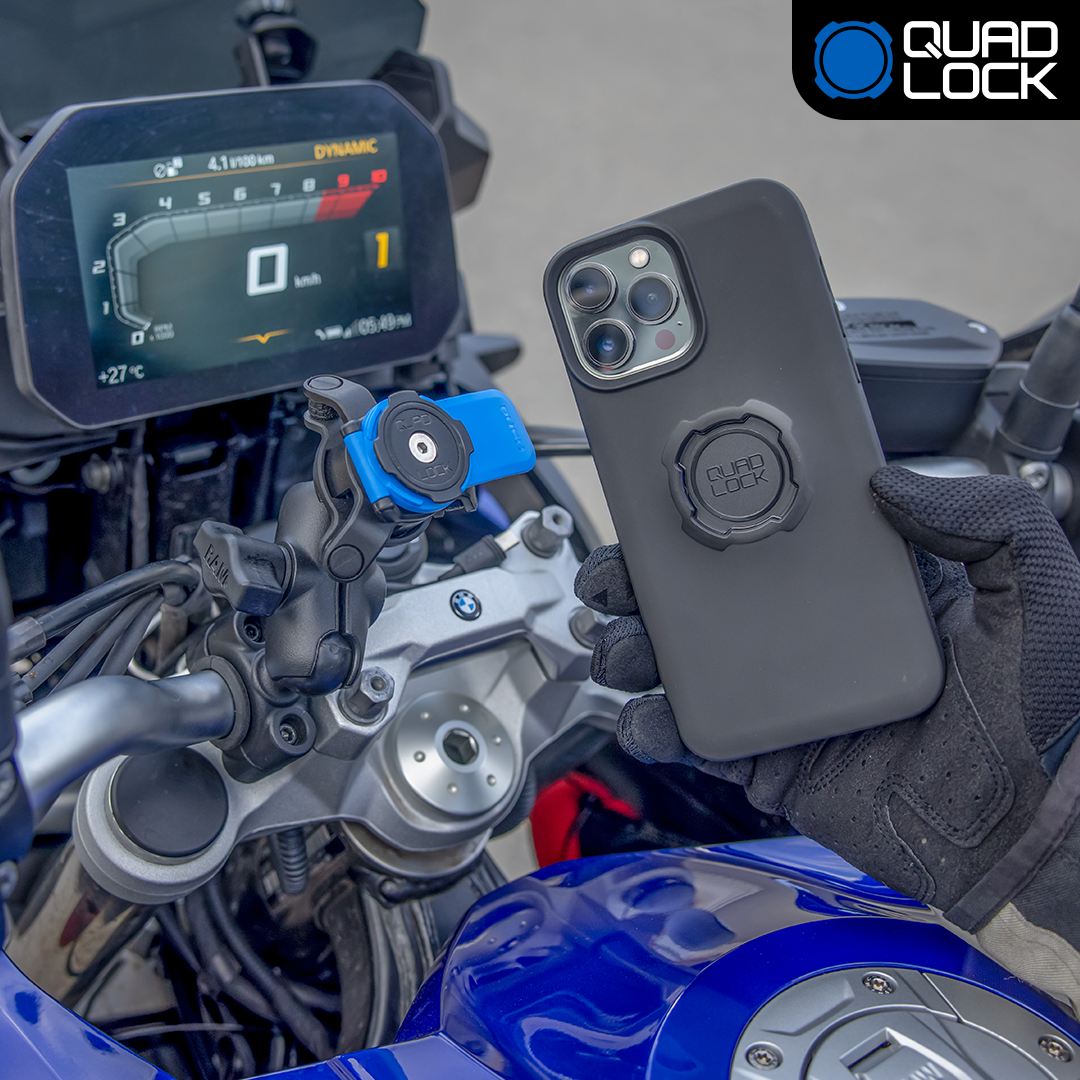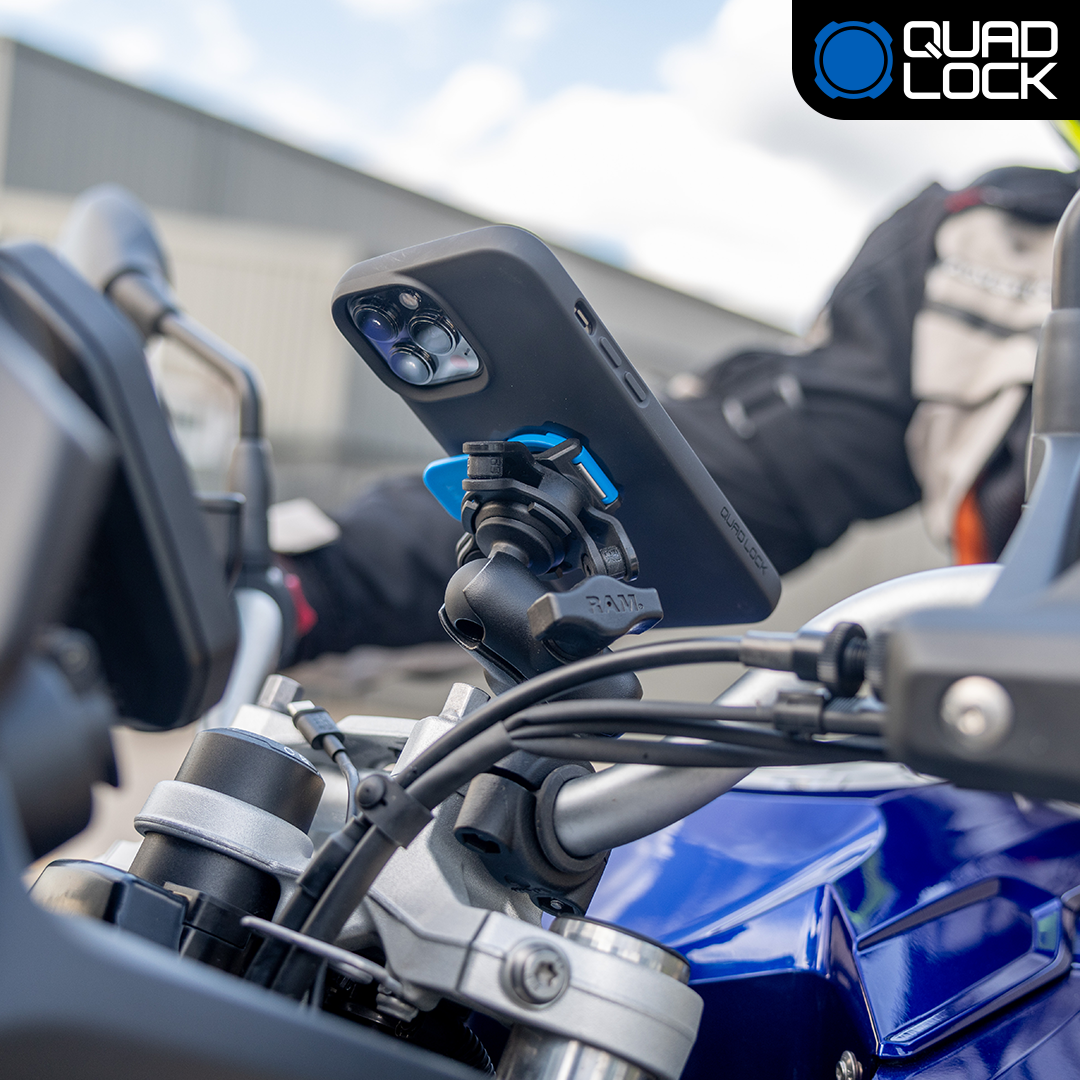 Ride with confidence: The Quad Lock® Apple iPhone 1″ ball Motorcycle Kit allows the Quad Lock® Mounting interface to be used with 1″ ball clamps such as RAM socket arms. Knowing that your phone is secured to your motorbike without the need for cumbersome lanyards, straps, bands or magnets.