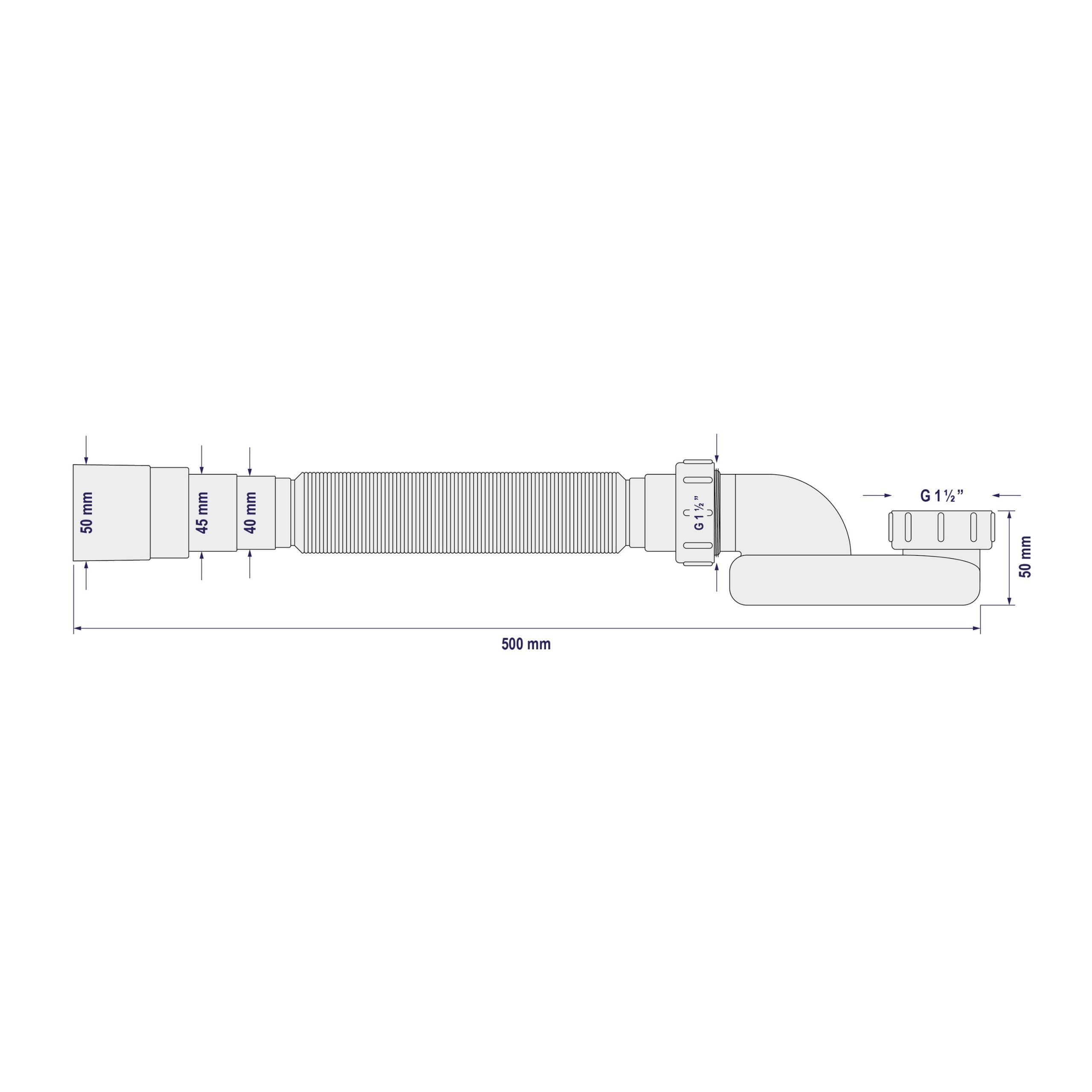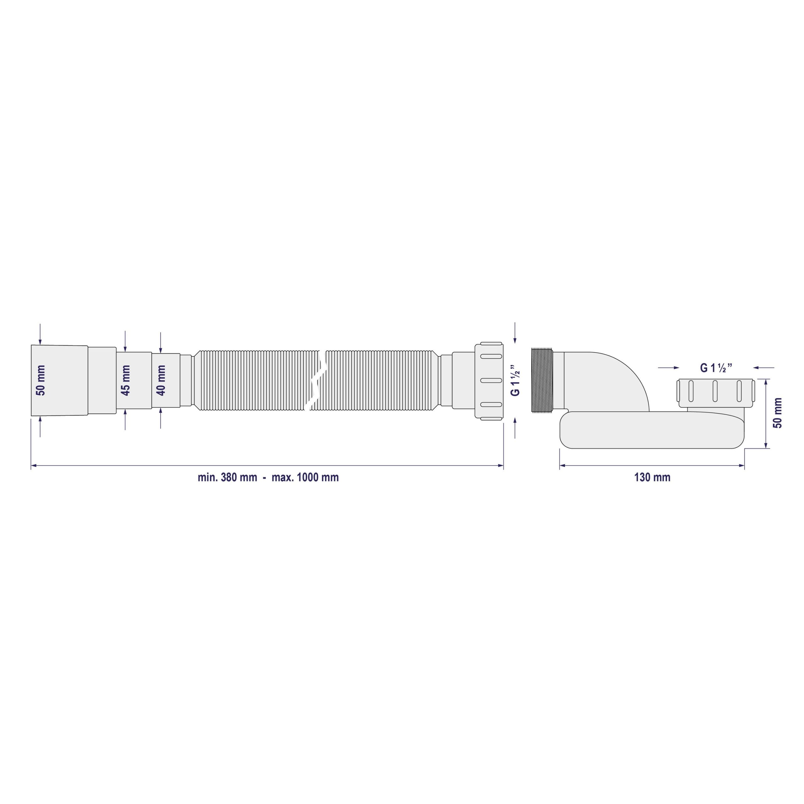 • Ablaufschlauch flexibel Ø 50 mm, Länge 95 cm