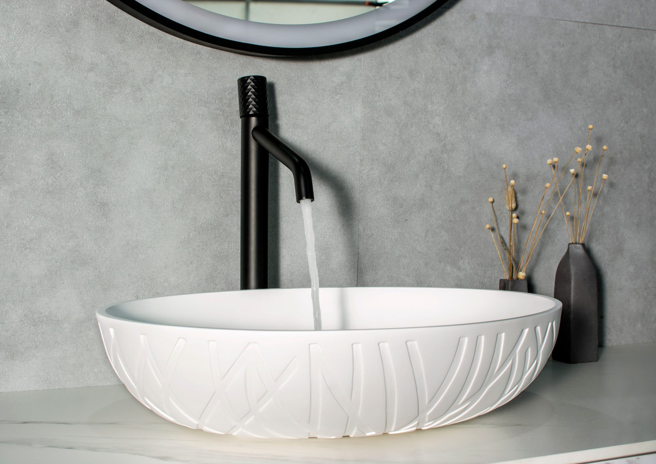 Design Aufsatzwaschbecken LEO aus Mineralguss Solid Stone – Farbe Weiß matt und Schwarz/Weiß matt wählbar