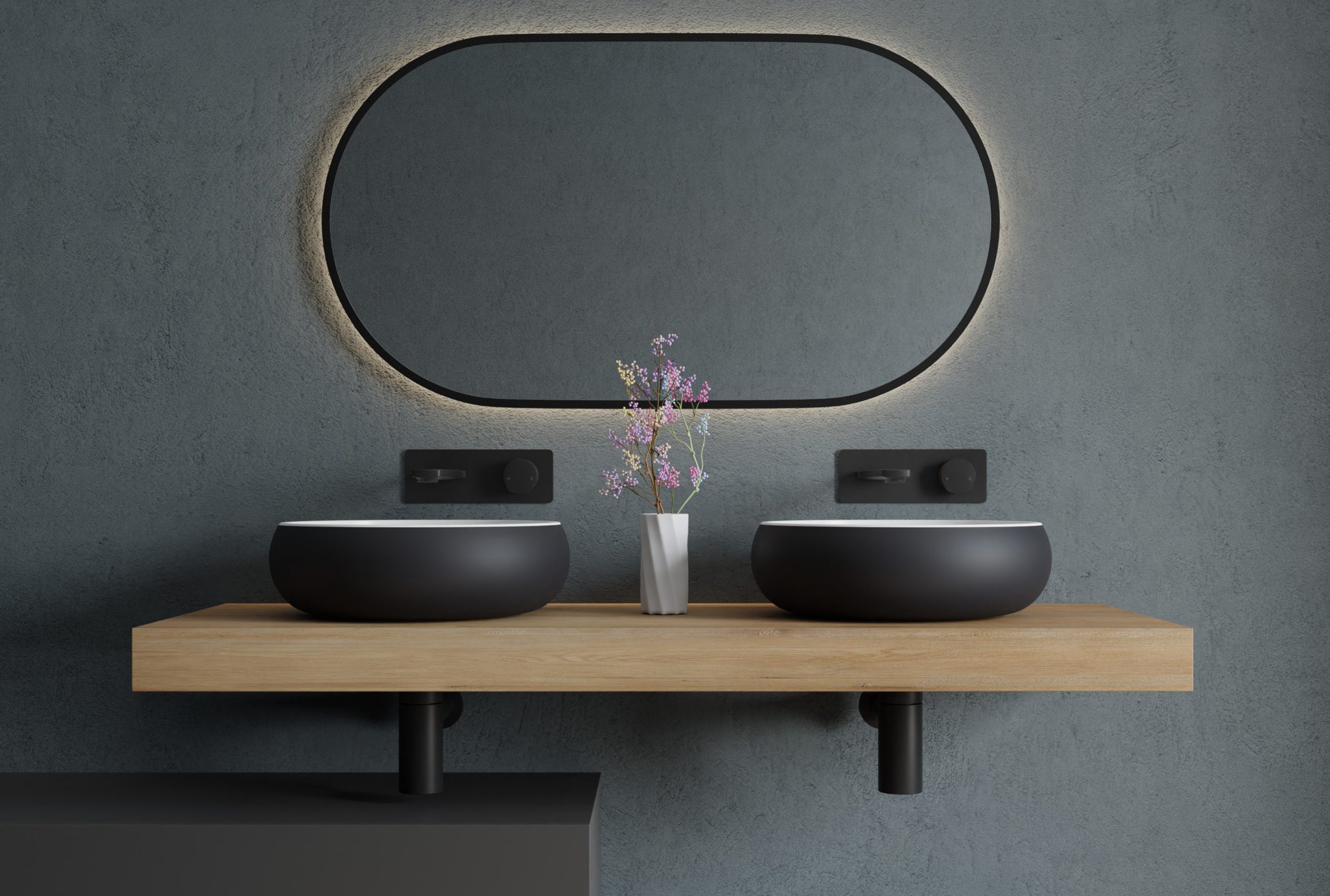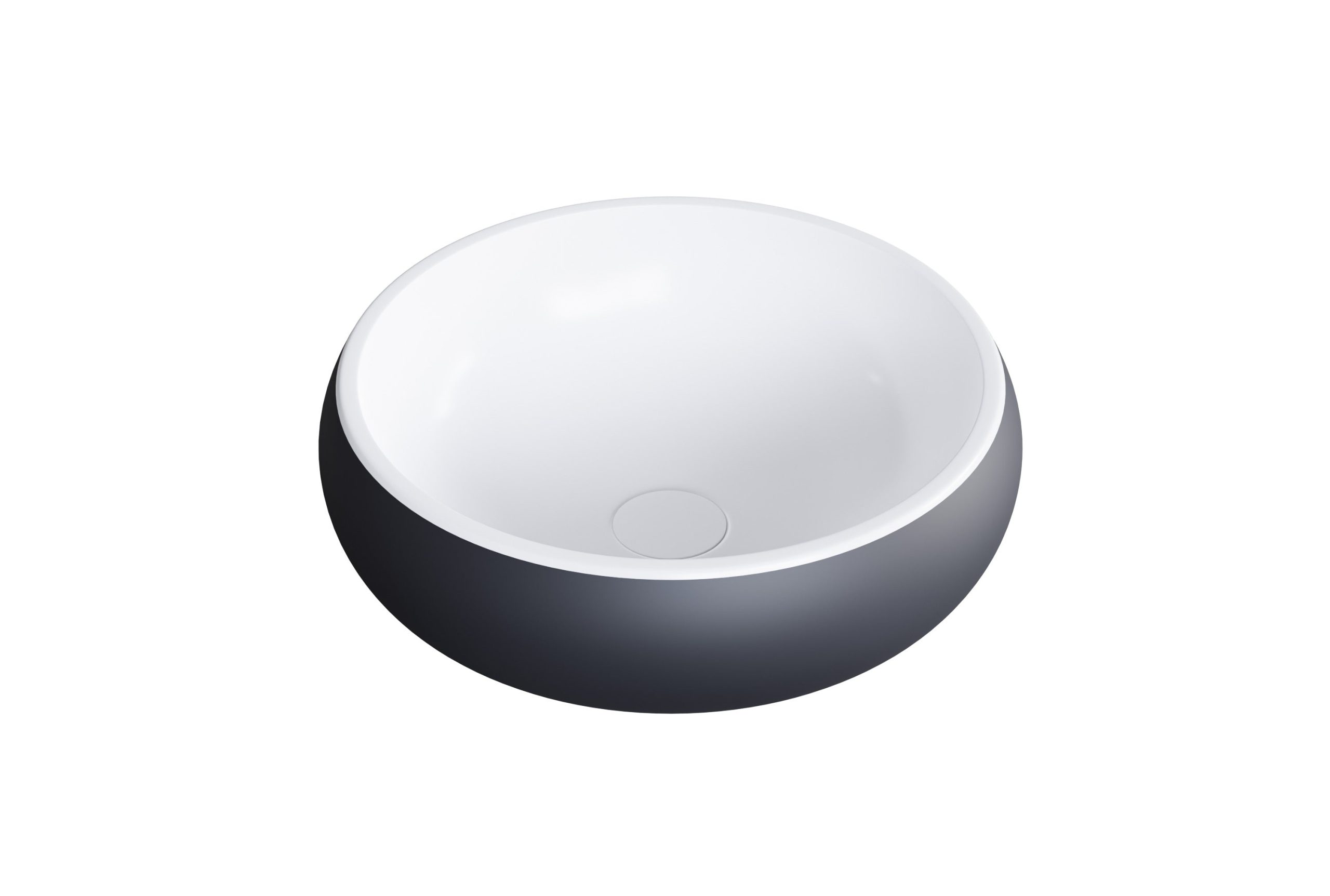 Aufsatzwaschbecken aus hochwertigem Mineralguss (Solid Stone) ✓ Modernes Design ✓ Runde Form ✓ Weiß oder Schwarz/Weiß ✓ Größe: 40x40x12cm ✓ Jetzt kaufen!