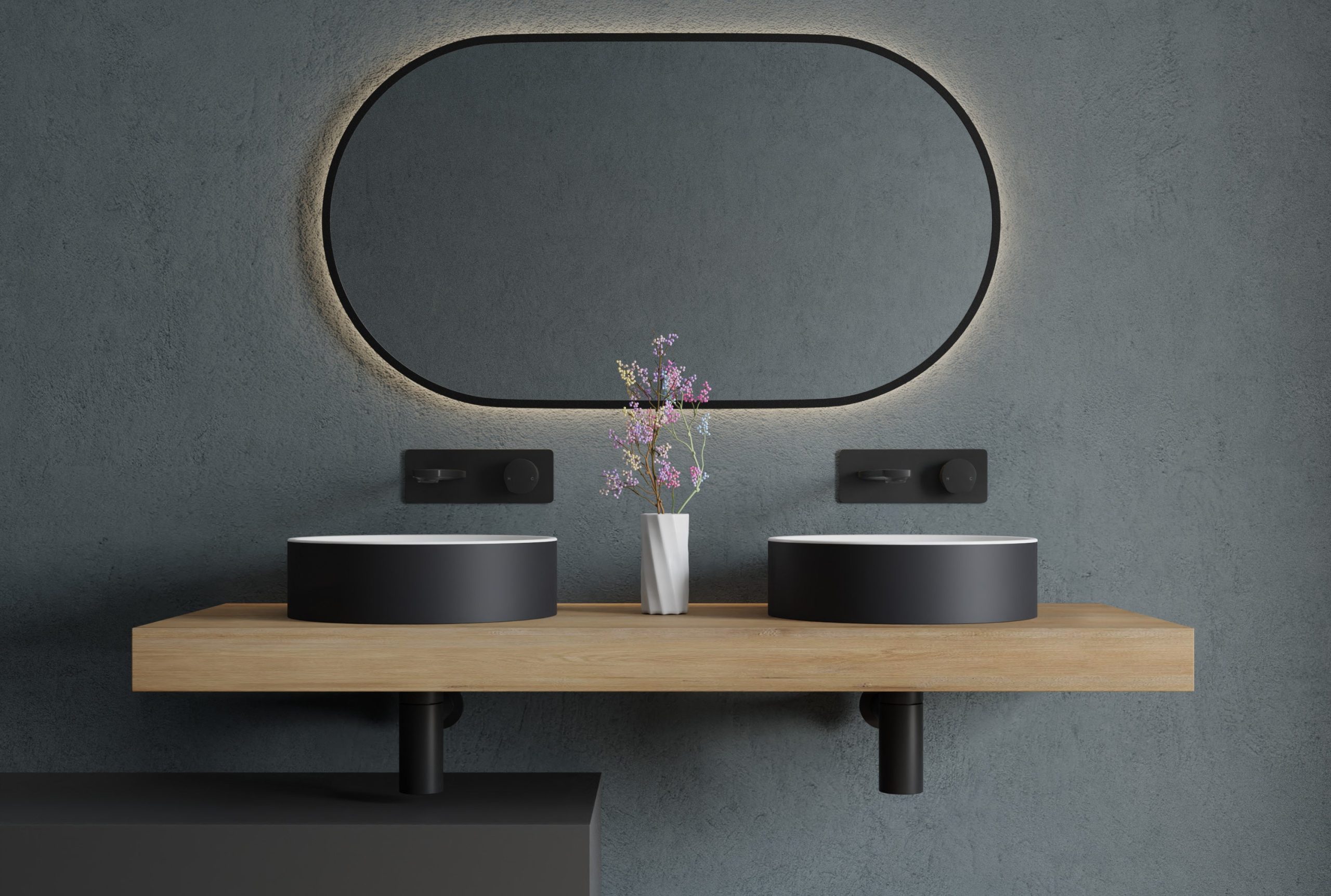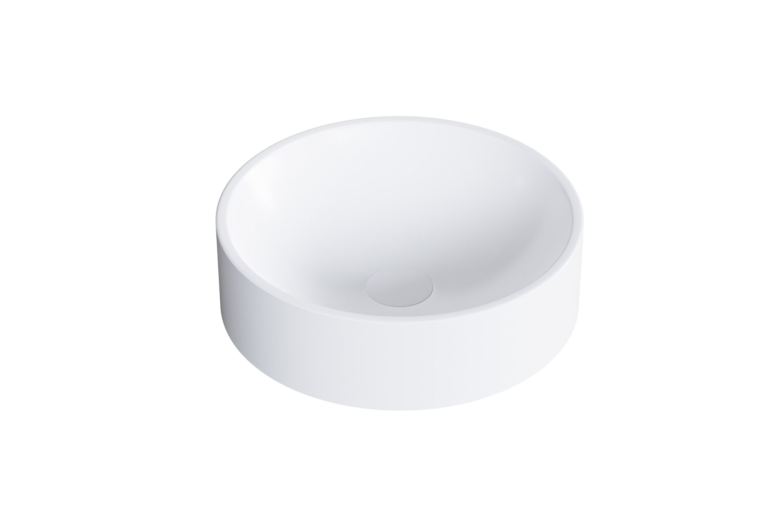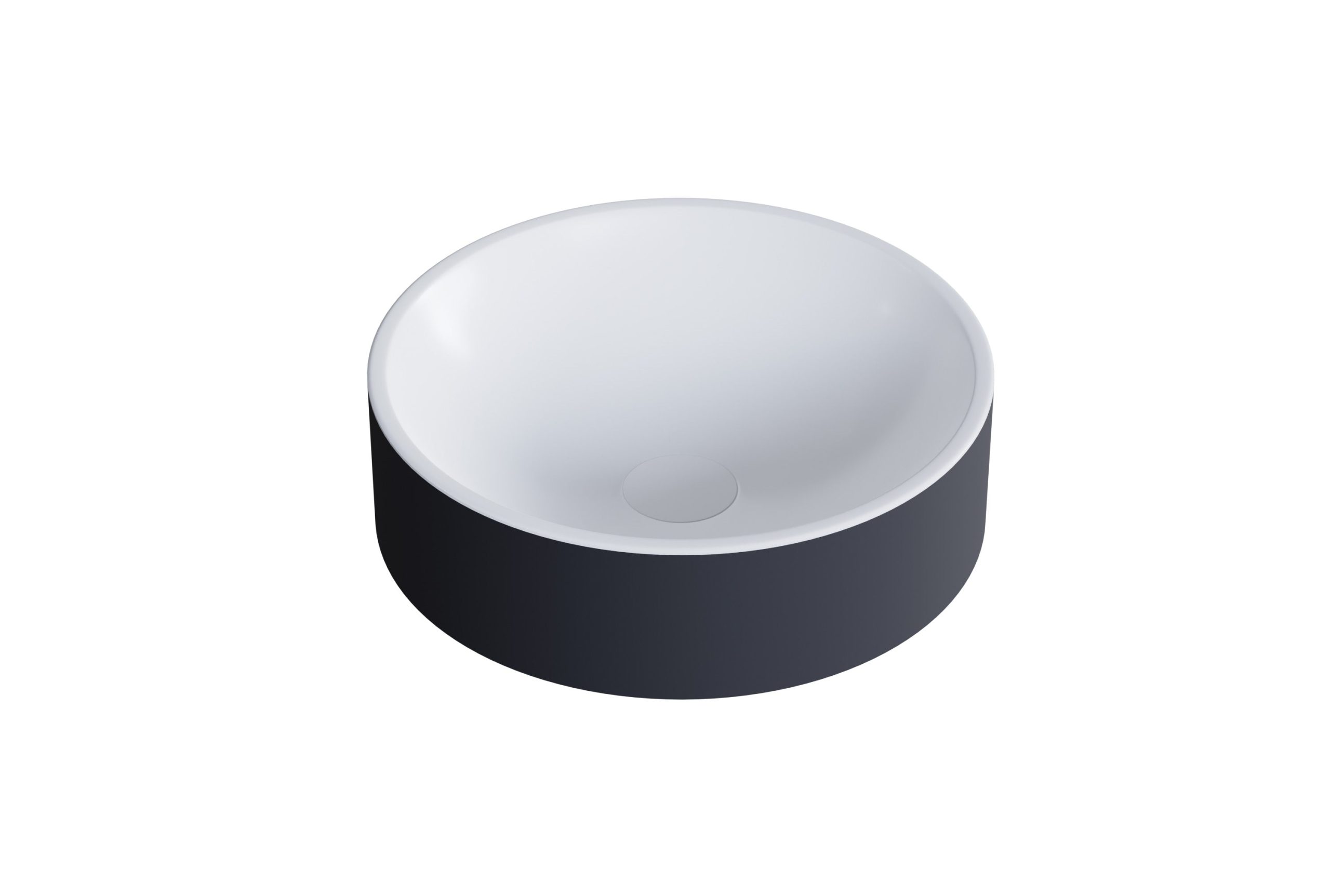 Aufsatzwaschbecken aus hochwertigem Mineralguss (Solid Stone) ✓ Modernes Design ✓ Runde Form ✓ Weiß oder Schwarz/Weiß ✓ Größe: 36x36x12,5cm ✓ Jetzt kaufen!
