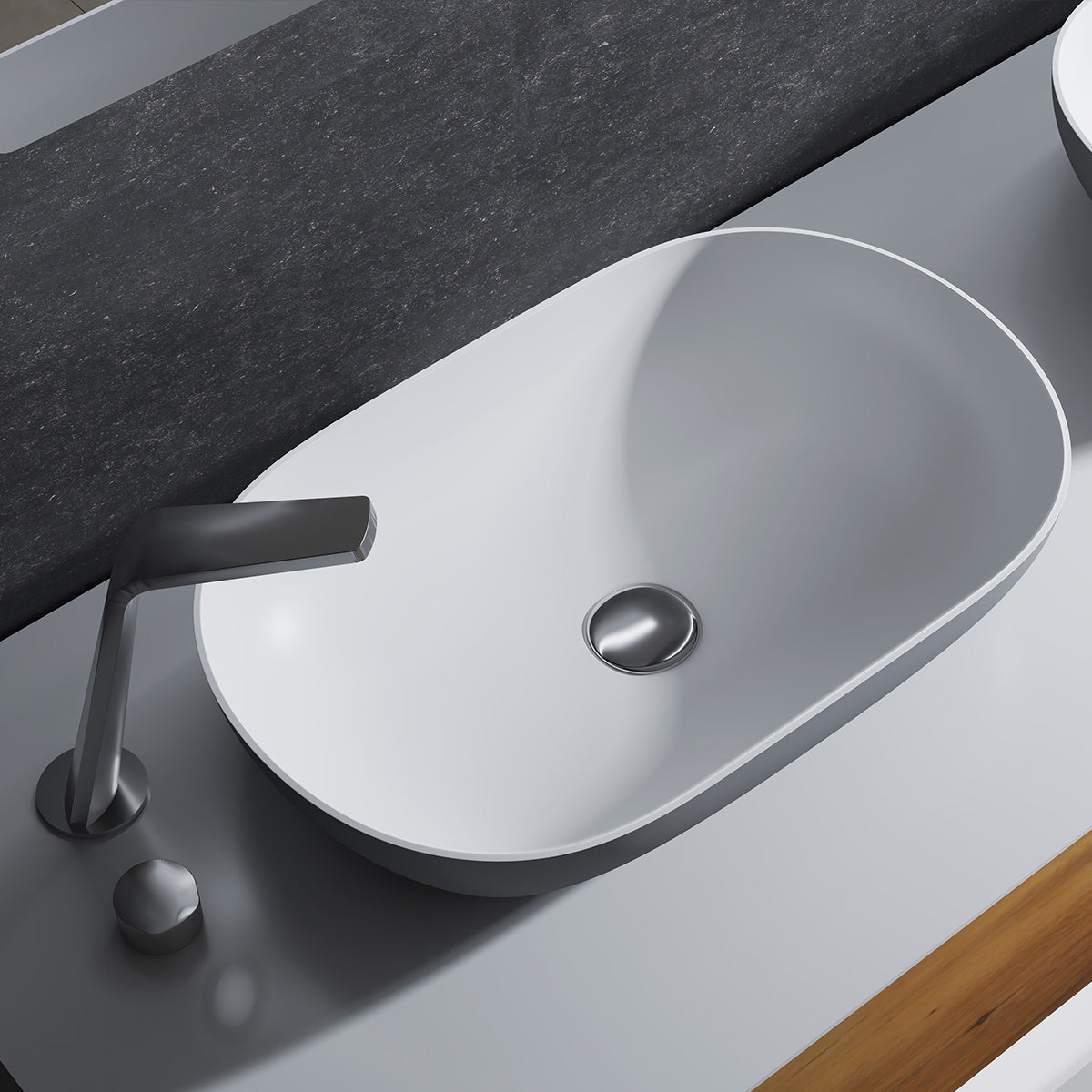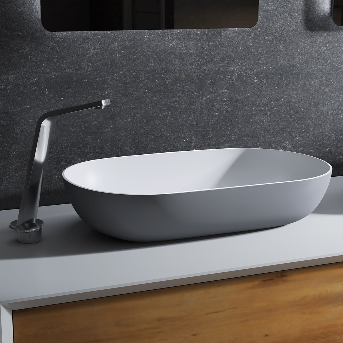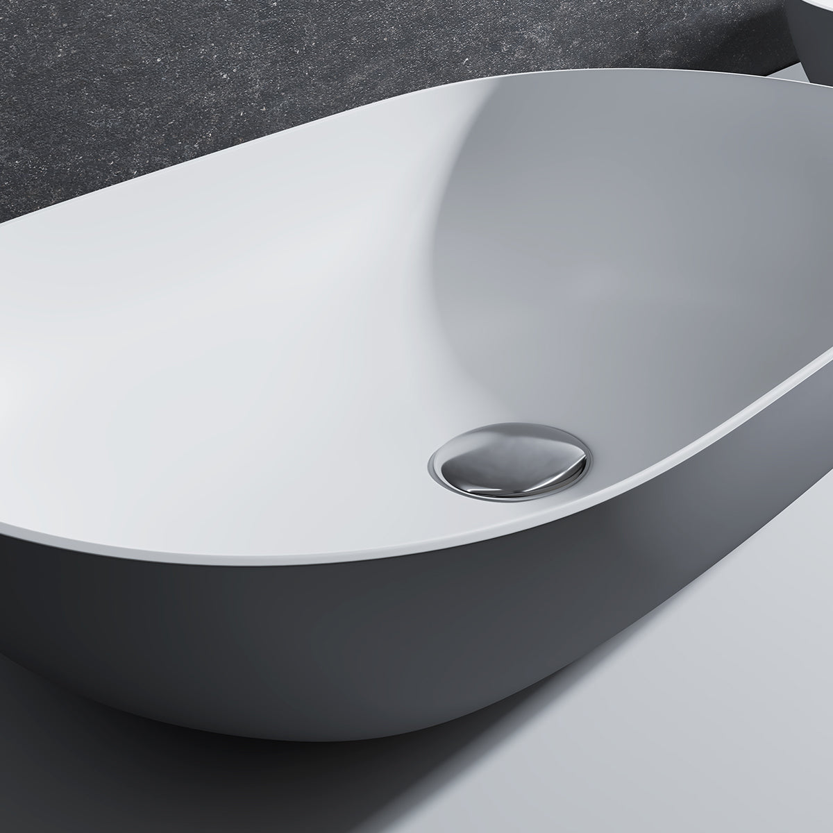 Ovales Aufsatzwaschbecken O-540 Grau/Weiß aus hochwertigem Mineralguss ✓ Modernes Design ✓ Grauer Rand weißes Becken ✓ 54x34x12cm