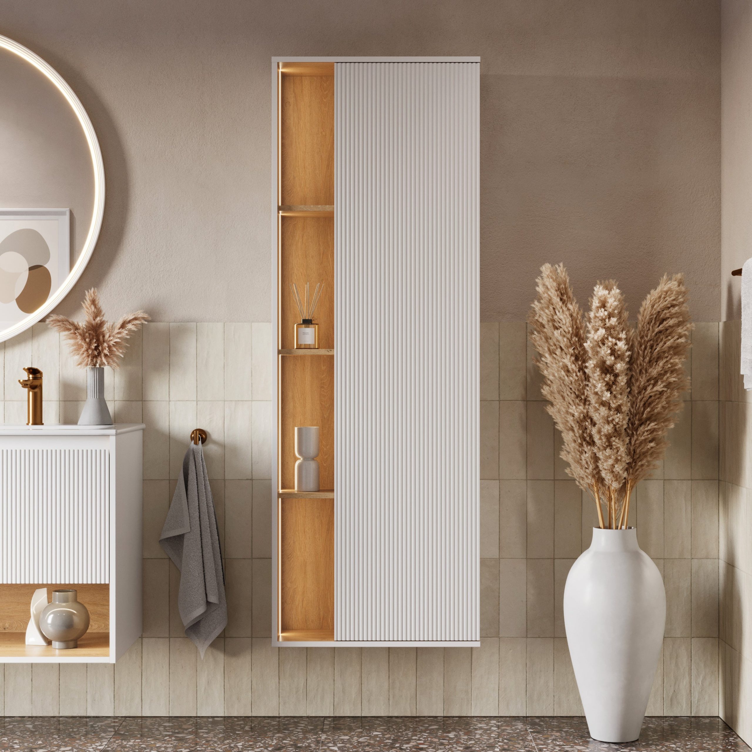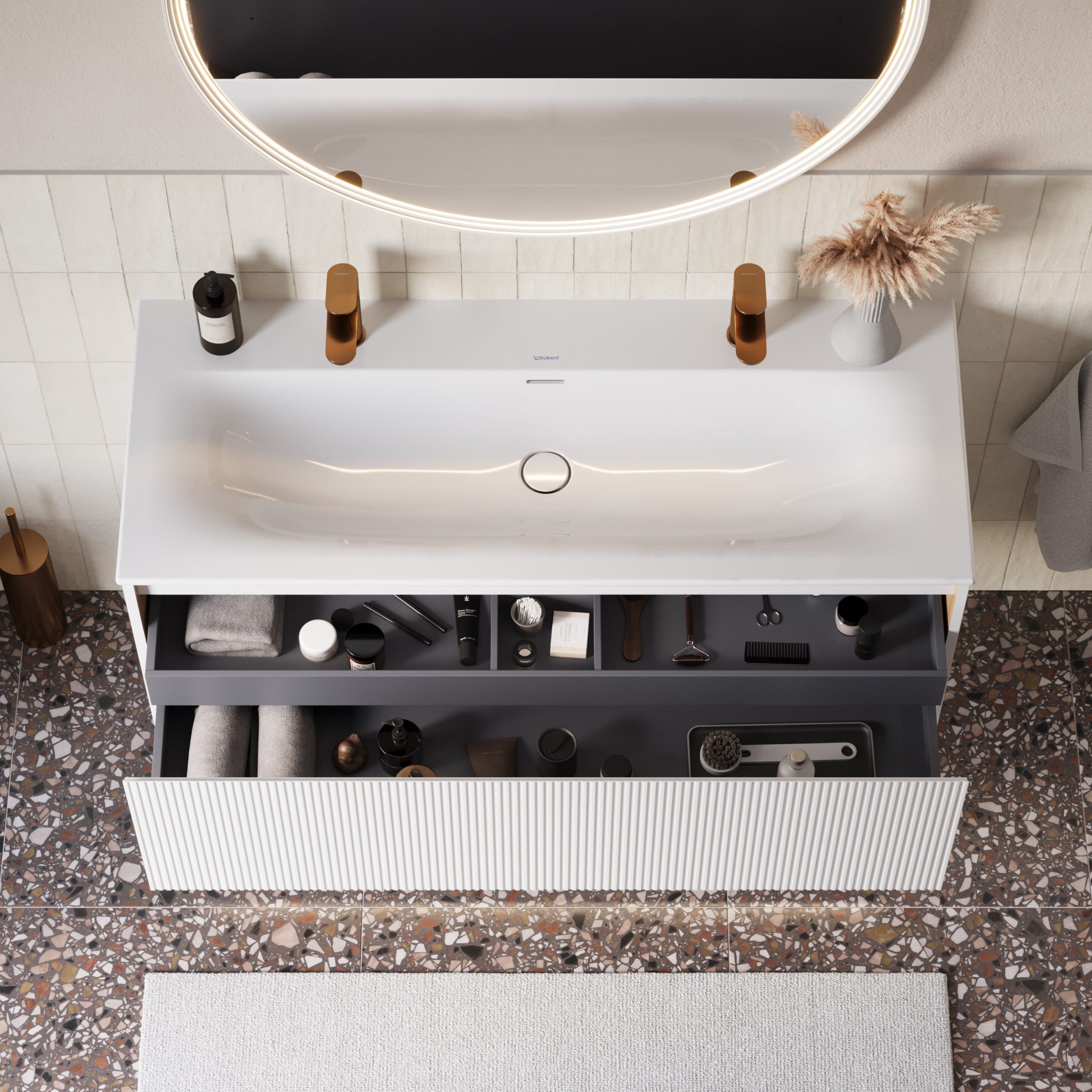 Badmöbel-Set in 120 cm mit Stil: BELDIVO kombiniert Duravit Waschbecken, LED Spiegel & Hochschrank für Dein modernes Badezimmer.