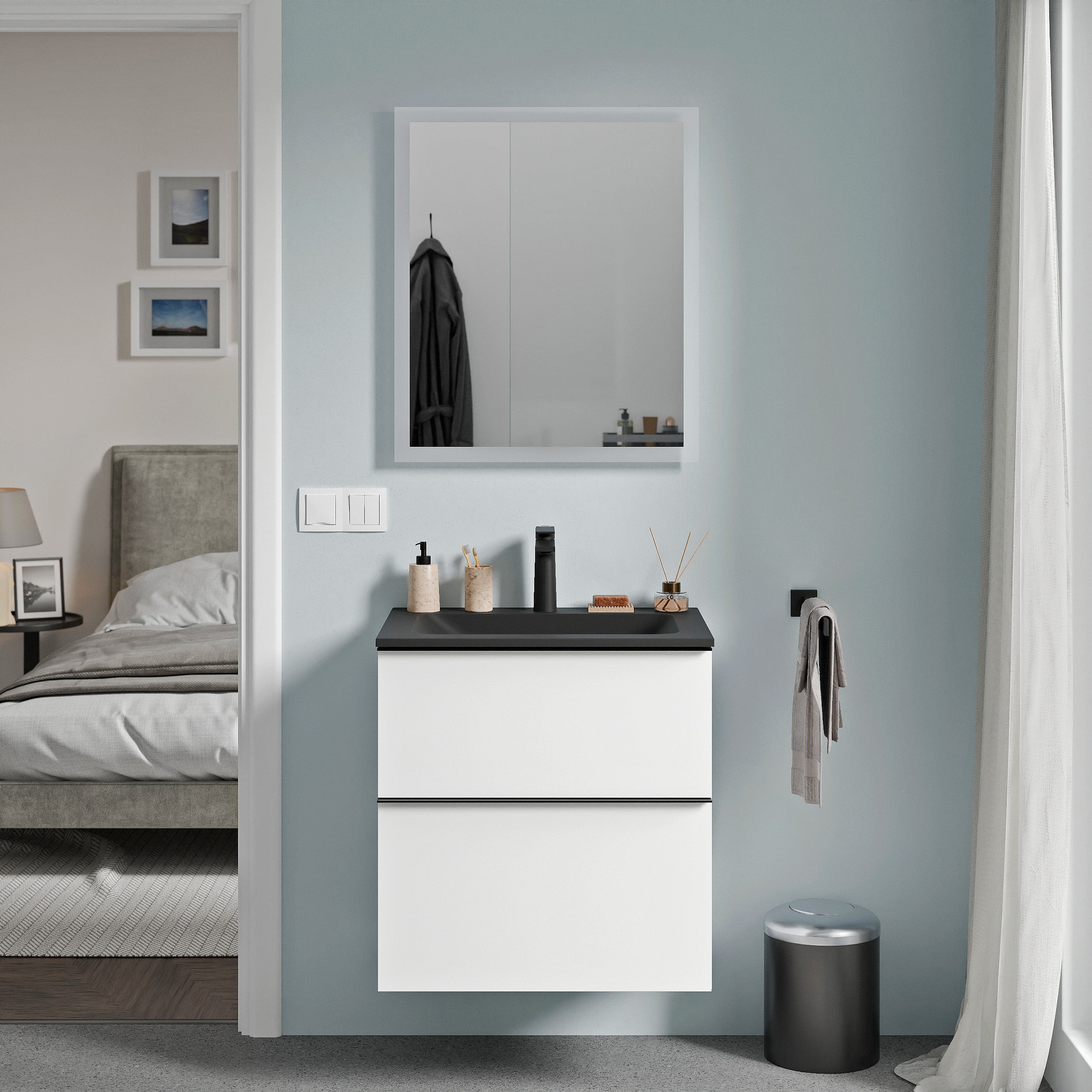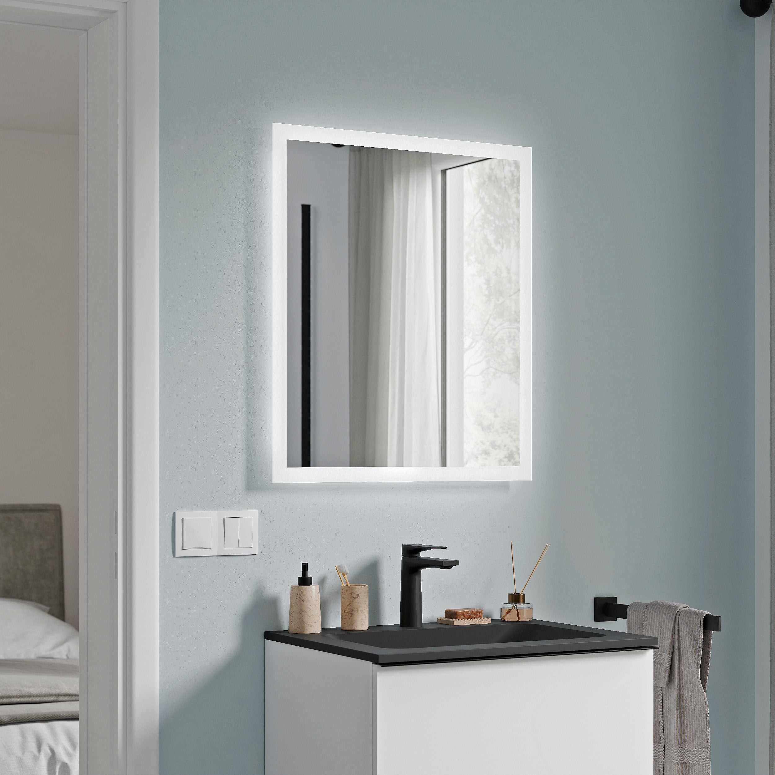 Badspiegel mit LED Beleuchtung VARO eckig – mit Spiegelheizung – Größe wählbar