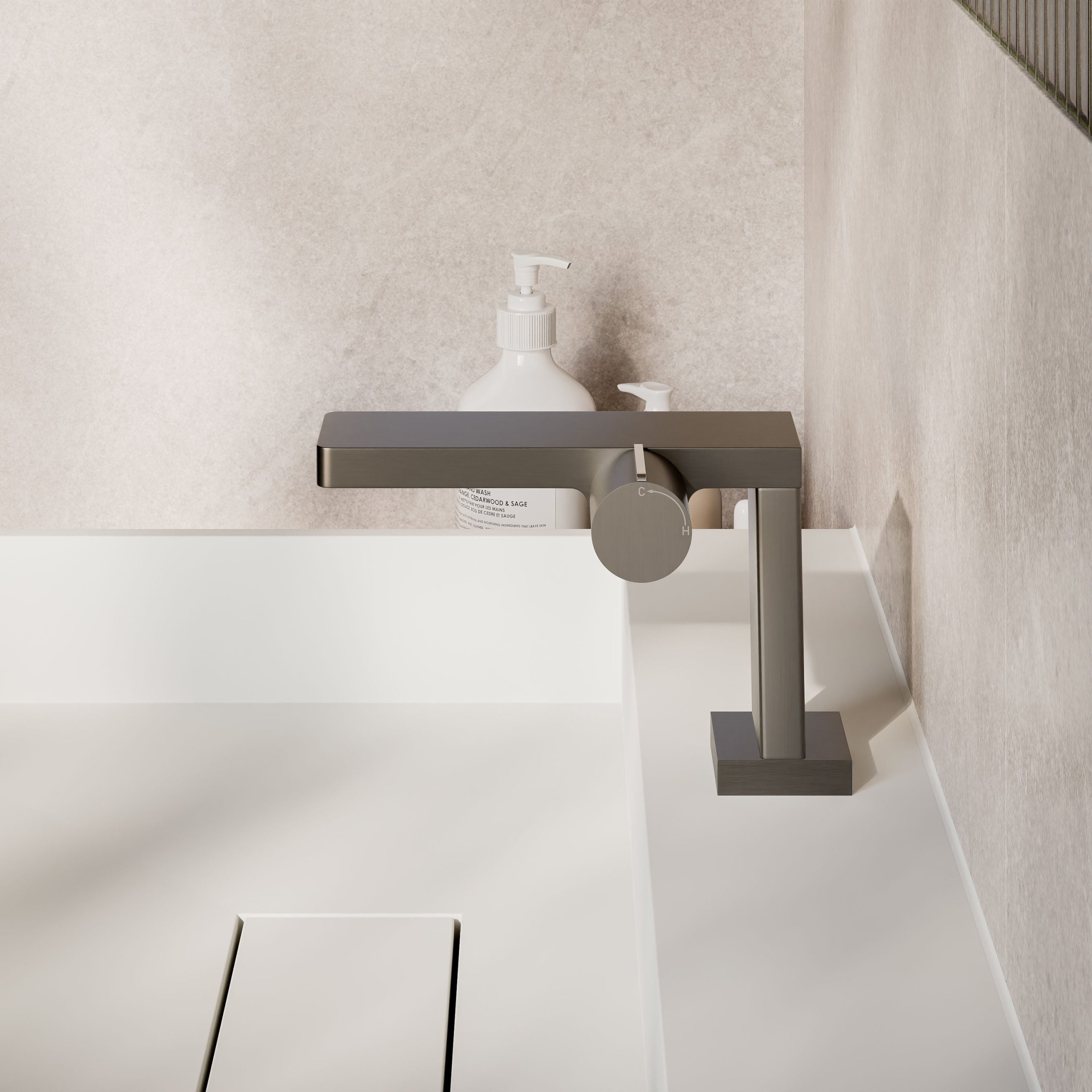 Moderne Badarmatur NT3110G – Eckige Waschbeckenarmatur in der Farbe Gunmetal