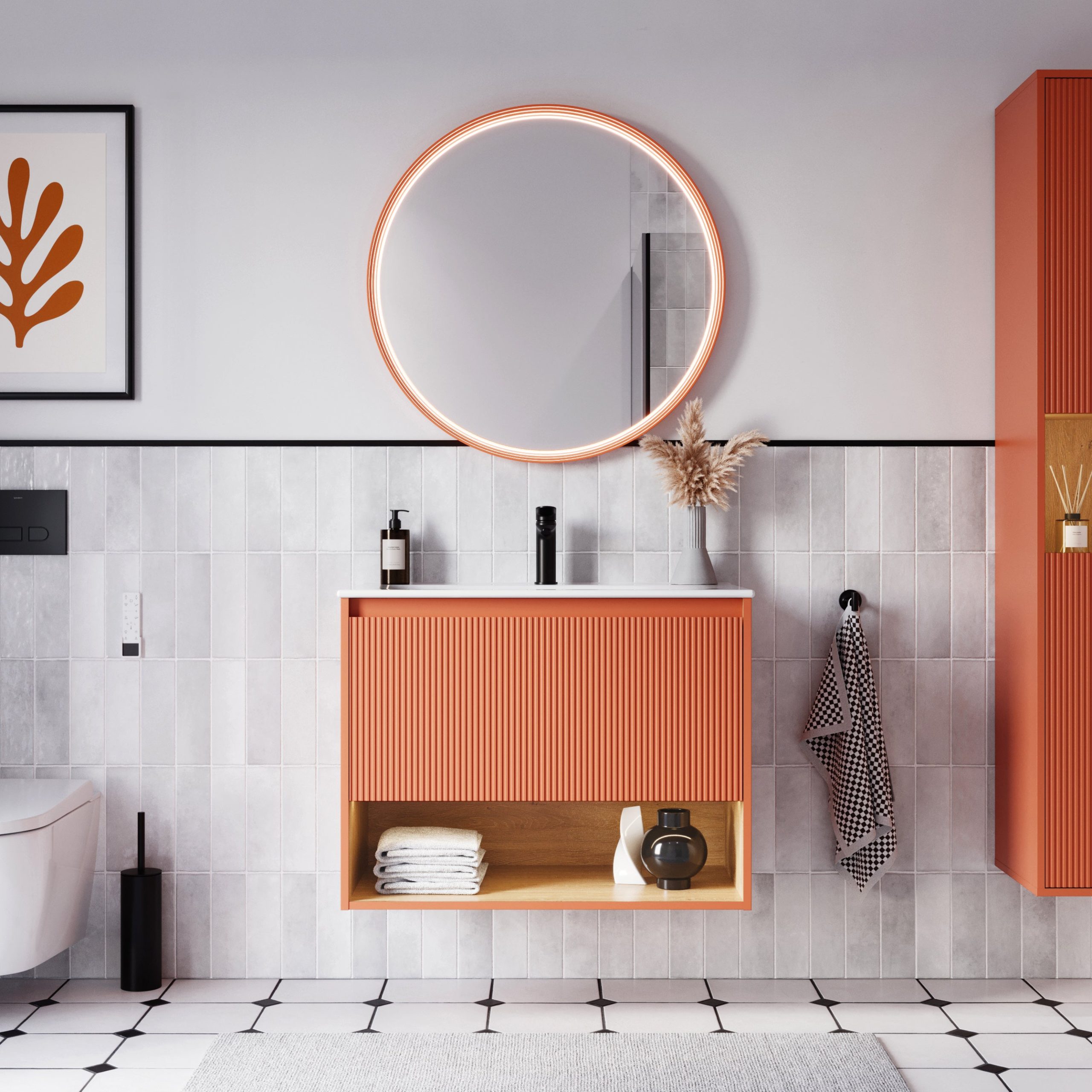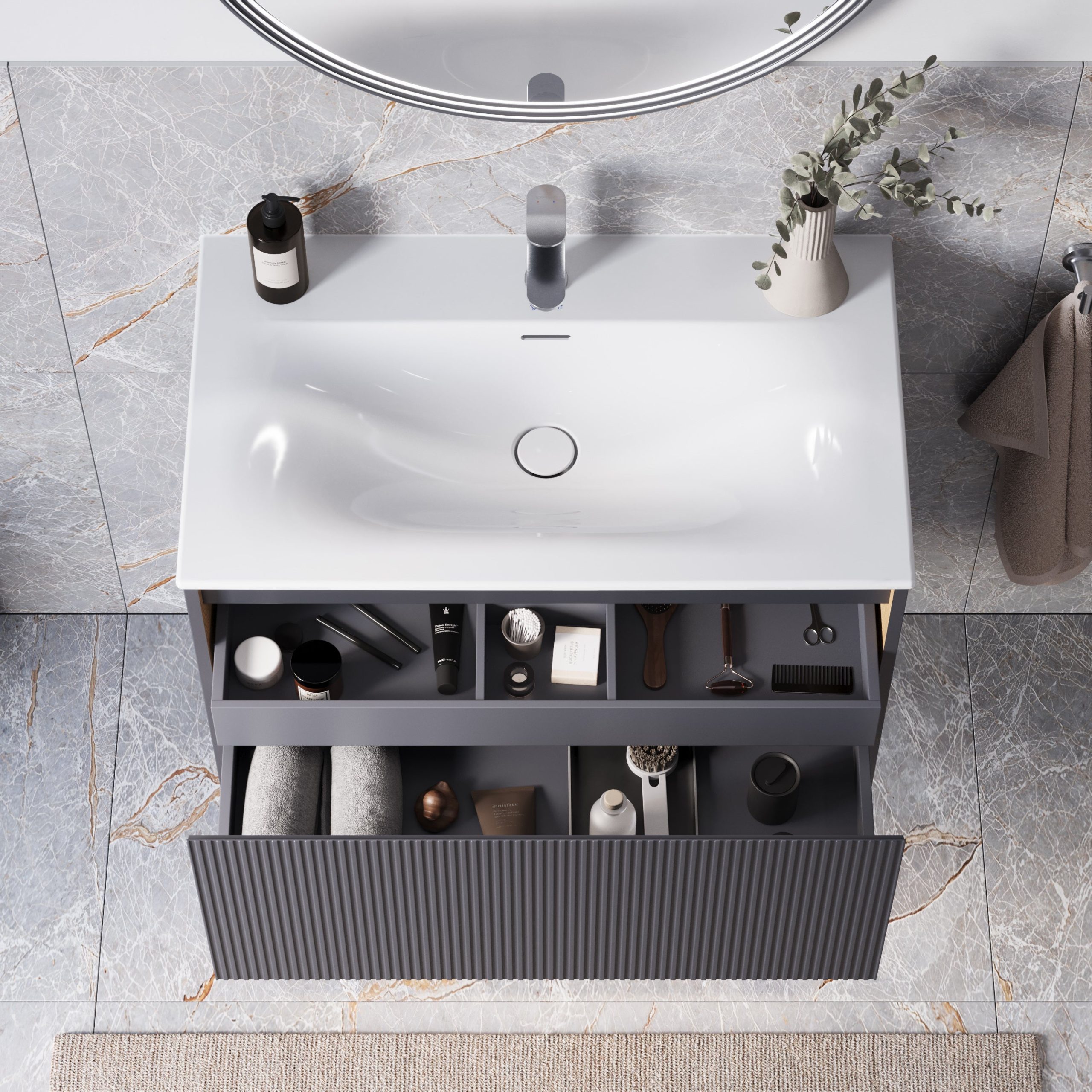 BELDIVO Waschtischunterschrank 80 cm mit LED-Beleuchtung – inkl. Duravit Waschbecken ★ 5 Jahre Garantie ★ Trendige Farben – Vormontierte Lieferung!