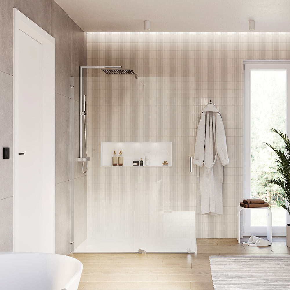 Als sehr funktional tritt die stilvolle Walk-In Dusche NT101 mit einem Festelement und einem Schiebeelement zum Vorschein. Sie ist praktisch in der Nutzung und zaubert ein angenehm minimalistisches Ambiente.