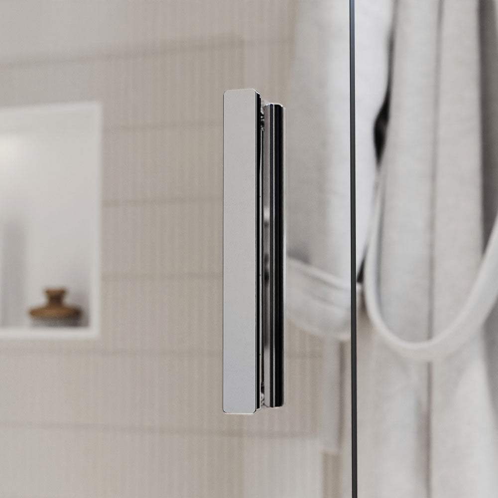 Die Alu-Profile in edlem Chrom verleihen dieser Dusche ein modernes und elegantes Design. Die Schiebetür können Sie am formschönen Stangengriff ganz einfach zur Seite schieben – so erweitern Sie den Spritzschutz in Ihrer Dusche. Die Duschkabine ist barrierefrei oder auf einer montierbar und bietet durch die überarbeitete Konstruktion maximale Einstiegsfreiheit. Das ESG-Sicherheitsglas ist mit einer wasserabweisenden Nano-Beschichtung versehen. Für den sicheren und festen Stand der Duschwand sorgt die Stabilisationsstange aus hochwertigem Edelstahl. Bei der Montage können Sie flexibel sein und die Duschabtrennung rechts – oder linksseitig montieren.