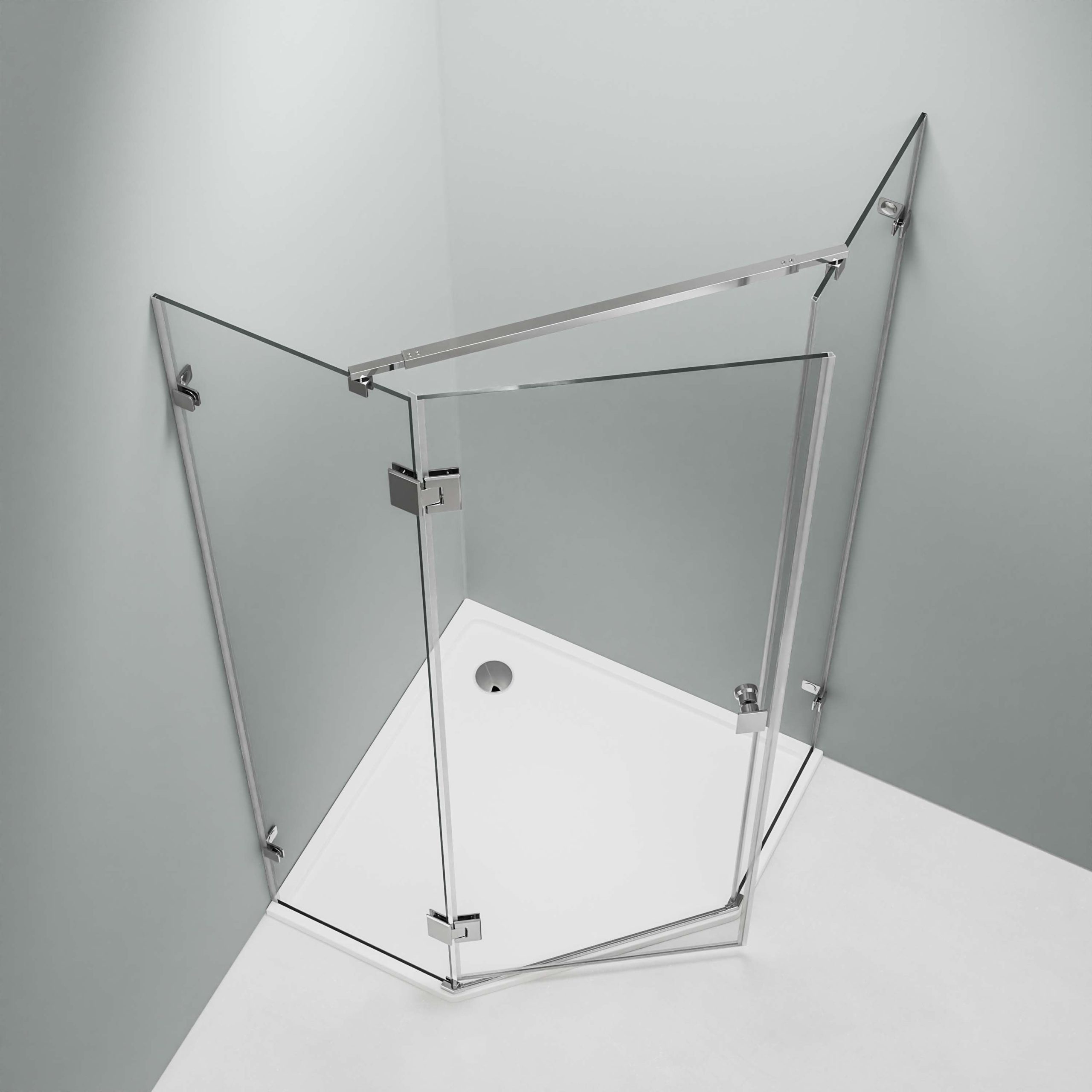 Fünfeck Duschkabine in rahmenlosem Design aus hochwertigem 8mm Sicherheitsglas.