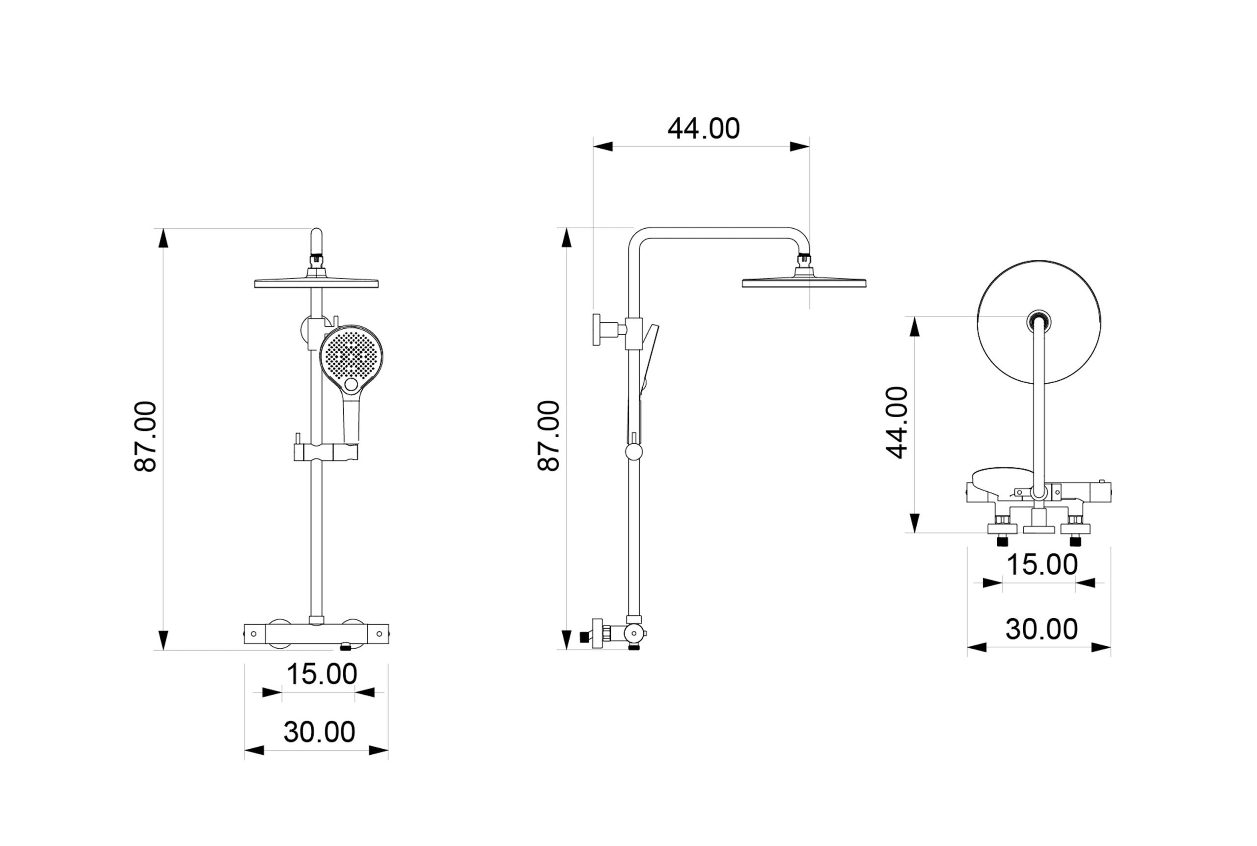 | Material | • Duschstange Edelstahl • Armaturenkörper Hochwertiger Messingkern • Duschschlauch: PVC • Duschkopf und Handbrause: ABS |