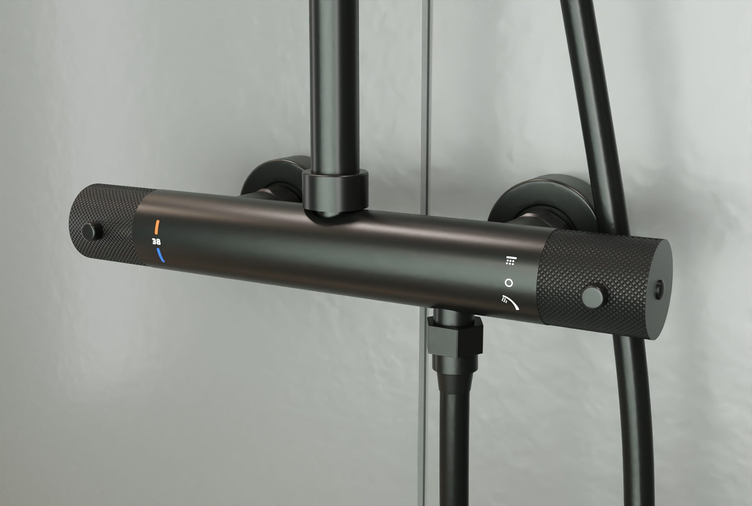 Duschsystem Thermostat 4011 PRO in Schwarz – Inkl. Duschkopf & Handbrause