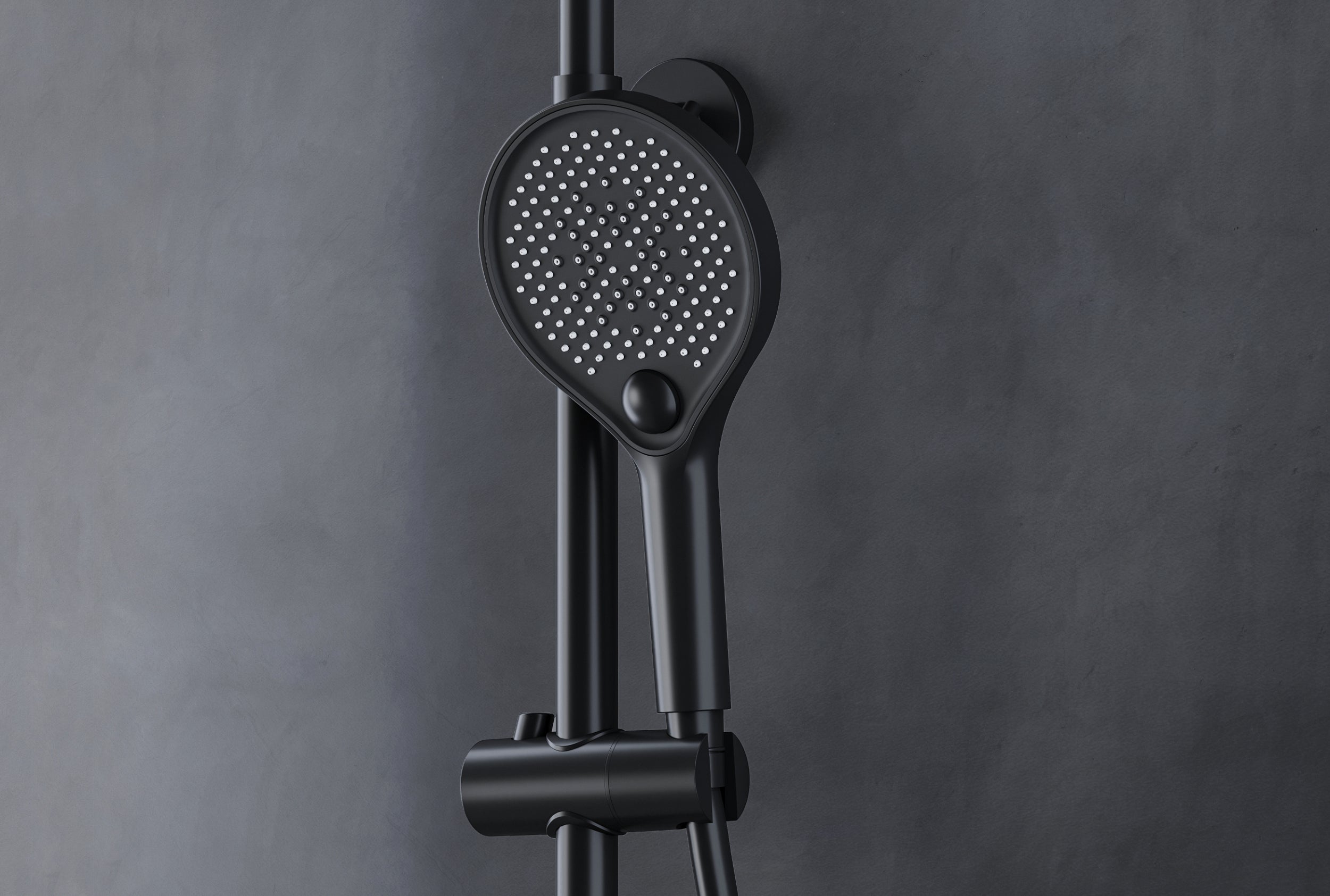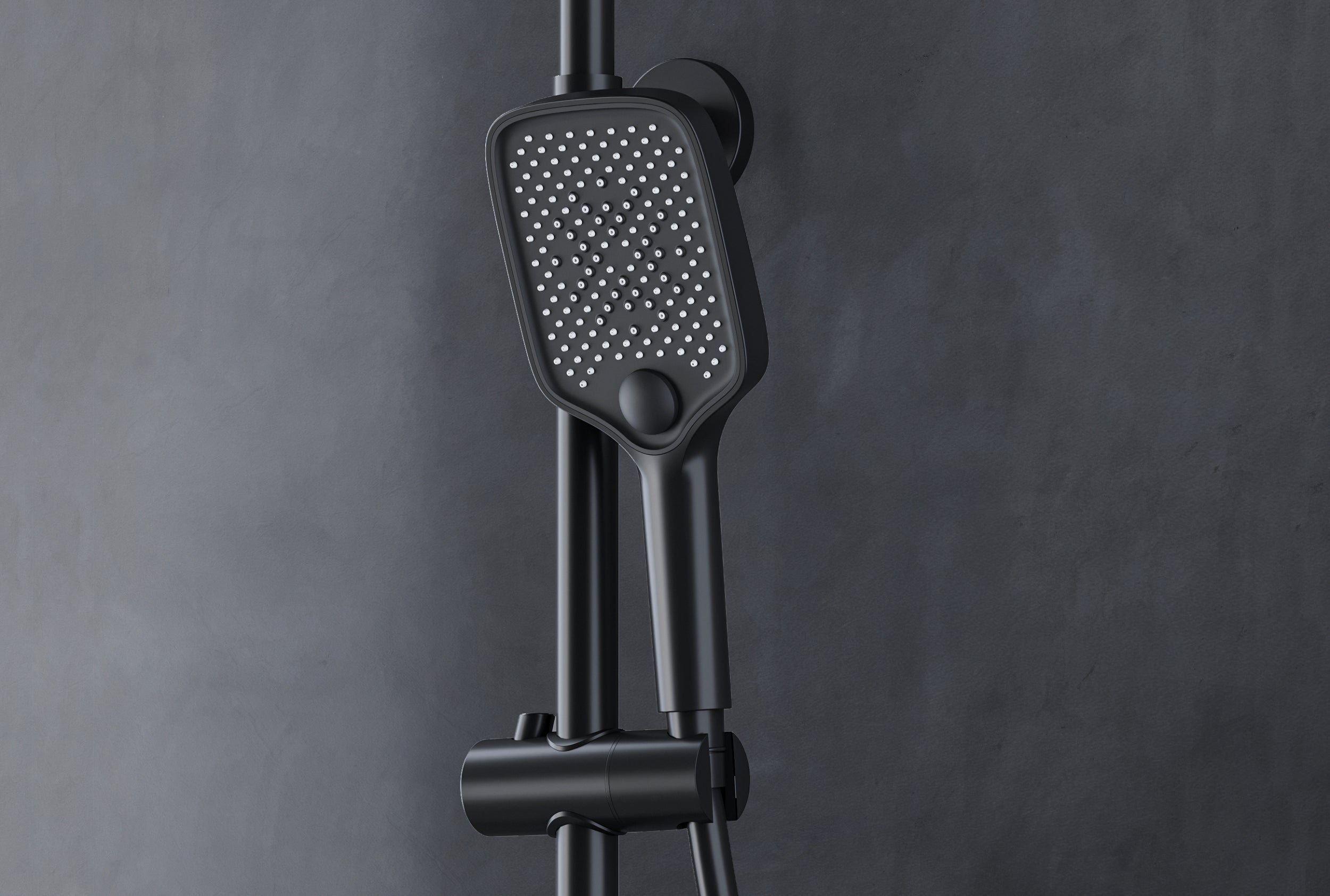 Das Duschsystem BS371 in der trendigen Farbe Schwarz matt erhalten Sie als Komplettset inkl. Regenduschkopf und großer Handbrause in modernem Tastendruck-Design. Zur Auswahl gibt es drei Strahlarten.