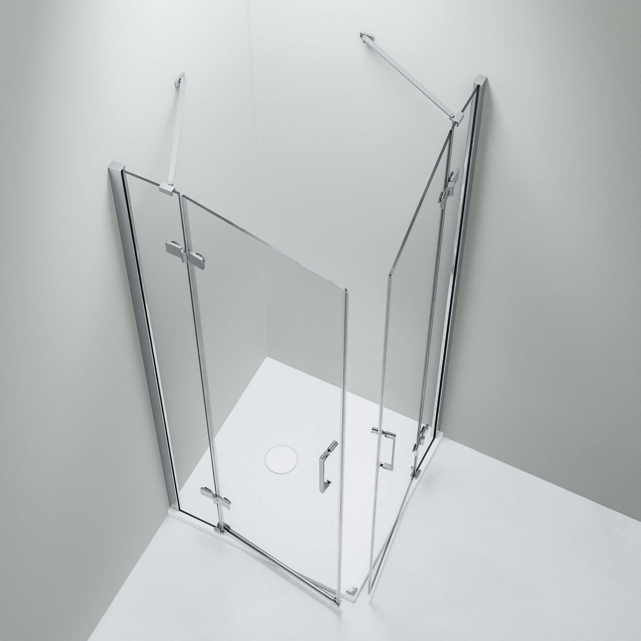 Das ESG-Sicherheitsglas ist mit einer Nano-Beschichtung versehen, sodass das Wasser abperlt. Gemeinsam mit den innen flächenbündig montierten Messingscharnieren werden somit unschöne Schmutz- und Kalkablagerungen verhindert und die Duschwände lassen sich schnell und einfach reinigen. Die Wandprofile erlauben bei Wandunebenheiten einen Wandausgleich von 20 mm.