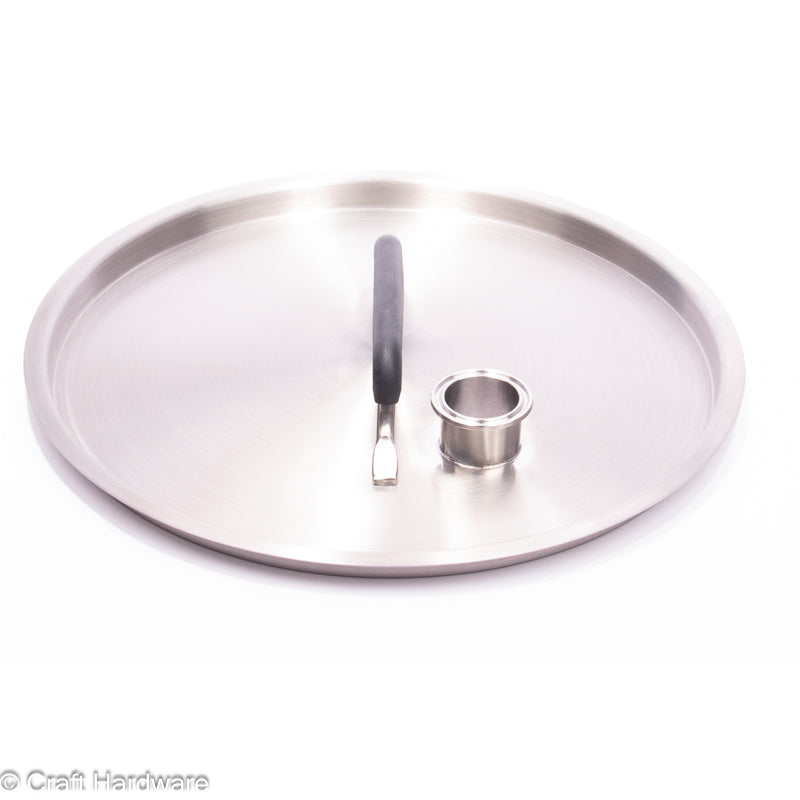 Ersatzdeckel für den Craft Hardware Flachboden 57L oder 60L mit Bodenablauf Kessel. Edelstahl mit silikonummanteltem Griff. Passt zu unseren 40cm breiten Kessel. Außendurchmesser 42,5 cm Es ist nicht garantiert, dass die Kessel von anderen Herstellern passt!