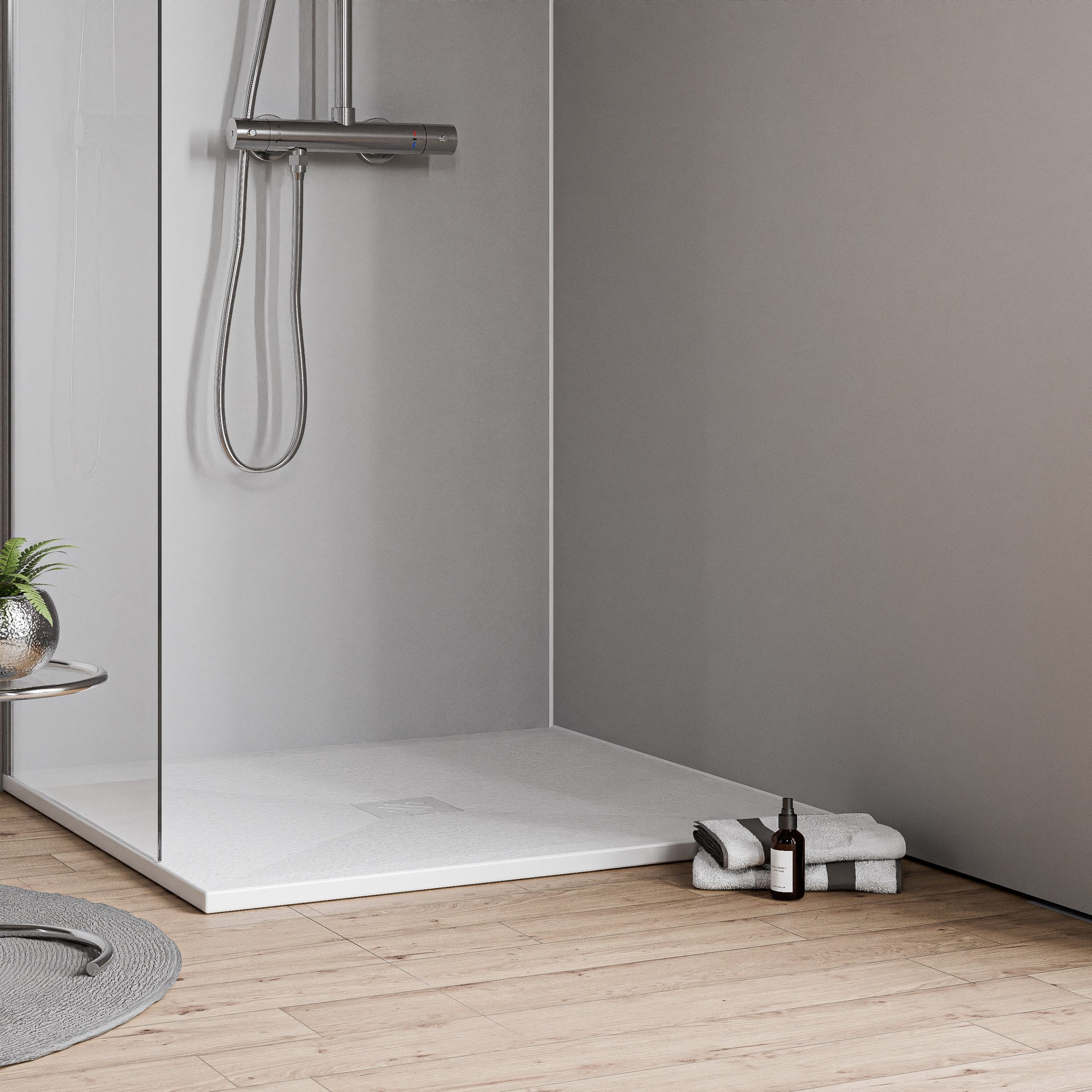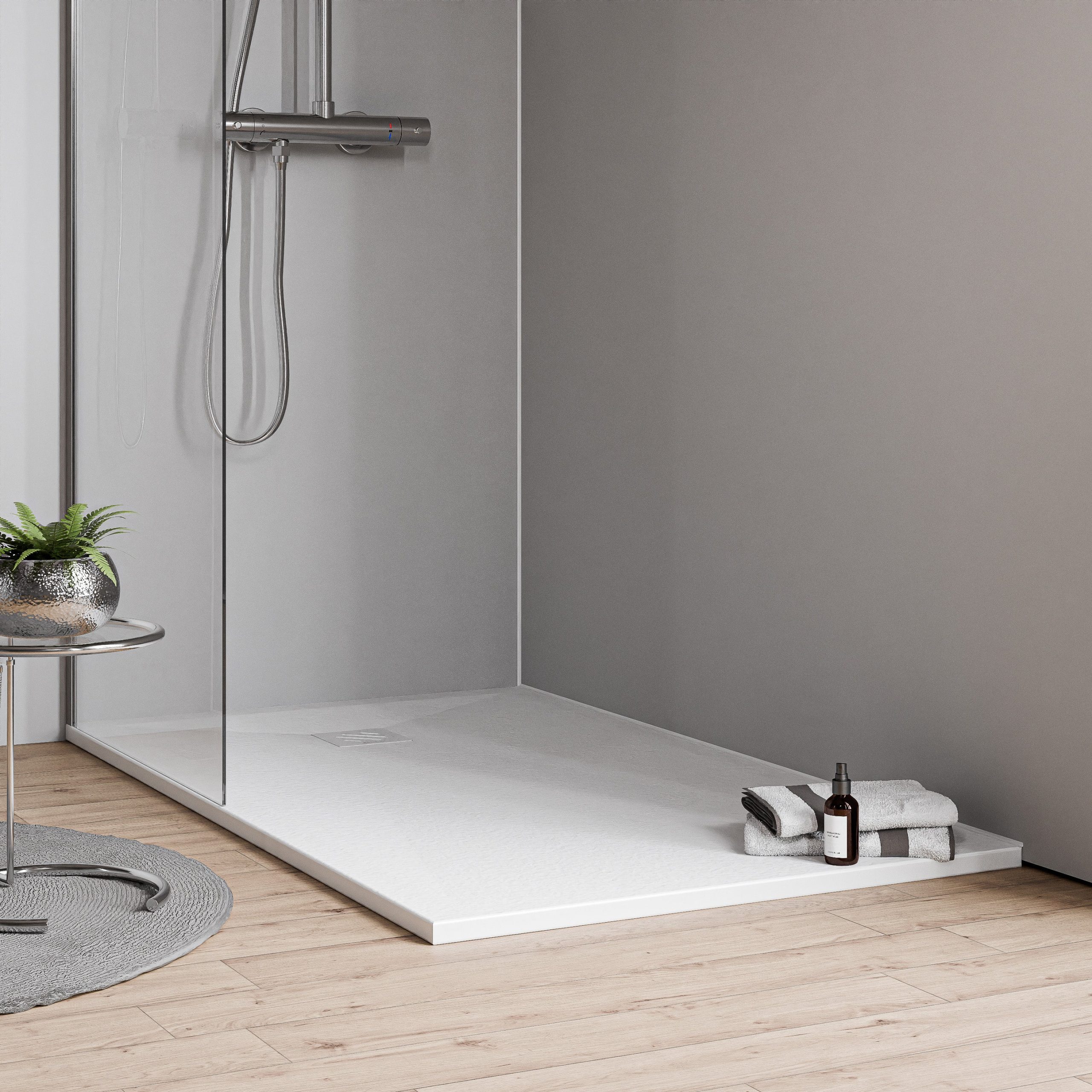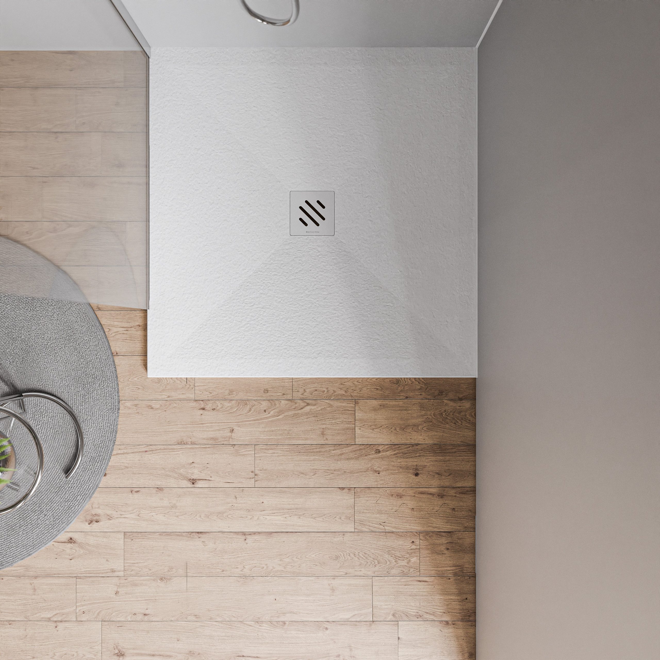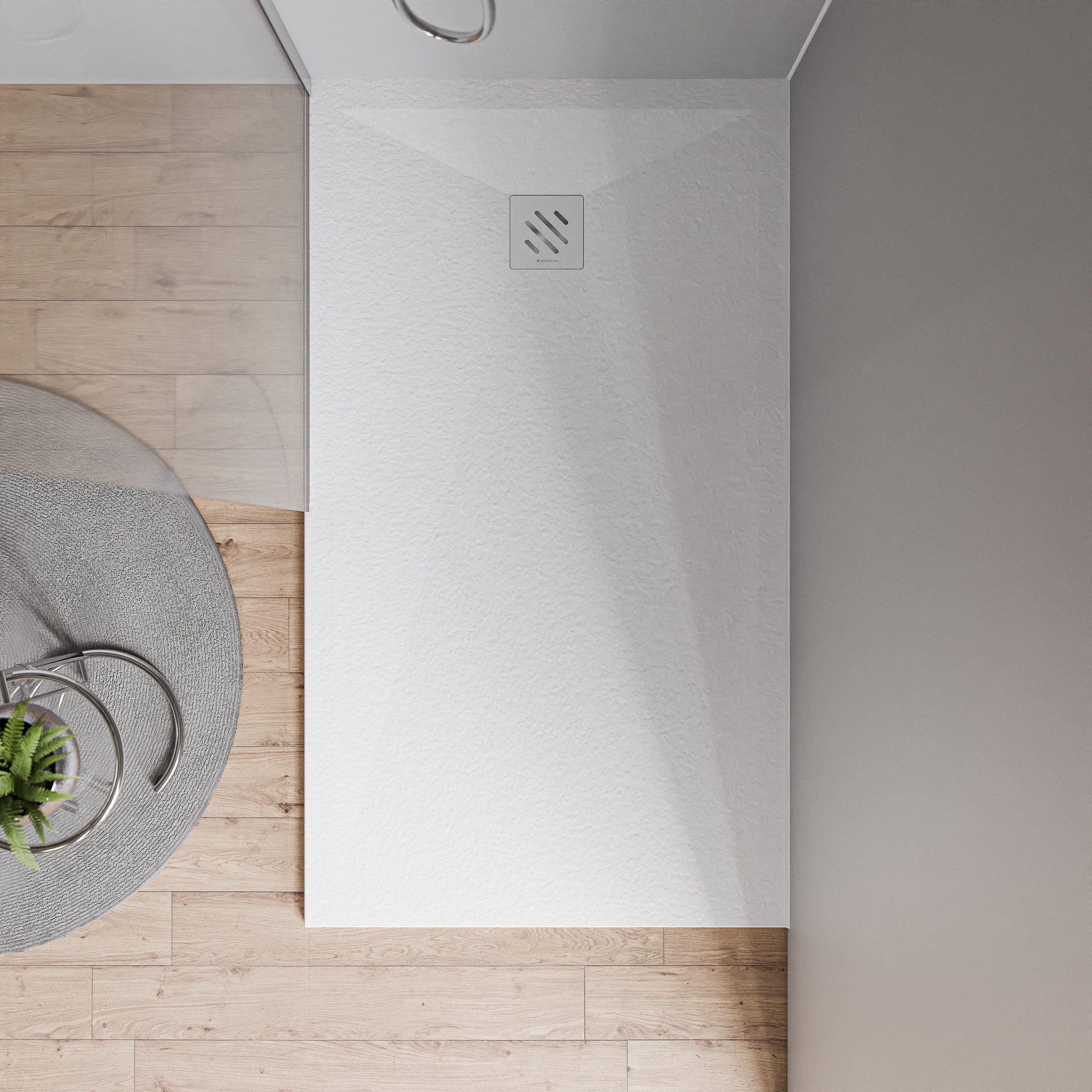Flache Duschwanne Mineralguss VIREO – Steinoptik Weiß matt – Größe wählbar