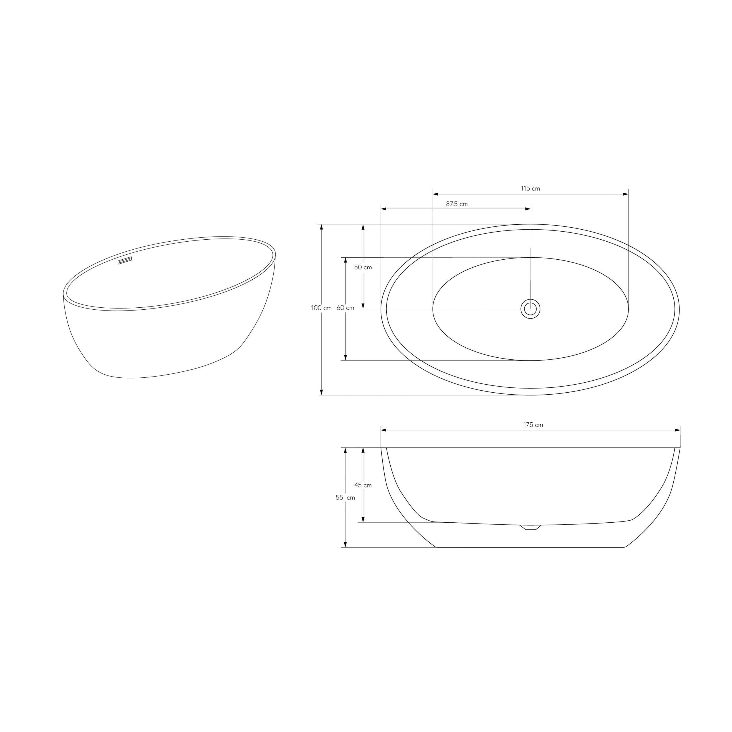 Freistehende Badewanne DESTINO Acryl Weiß – 175 x 100 cm