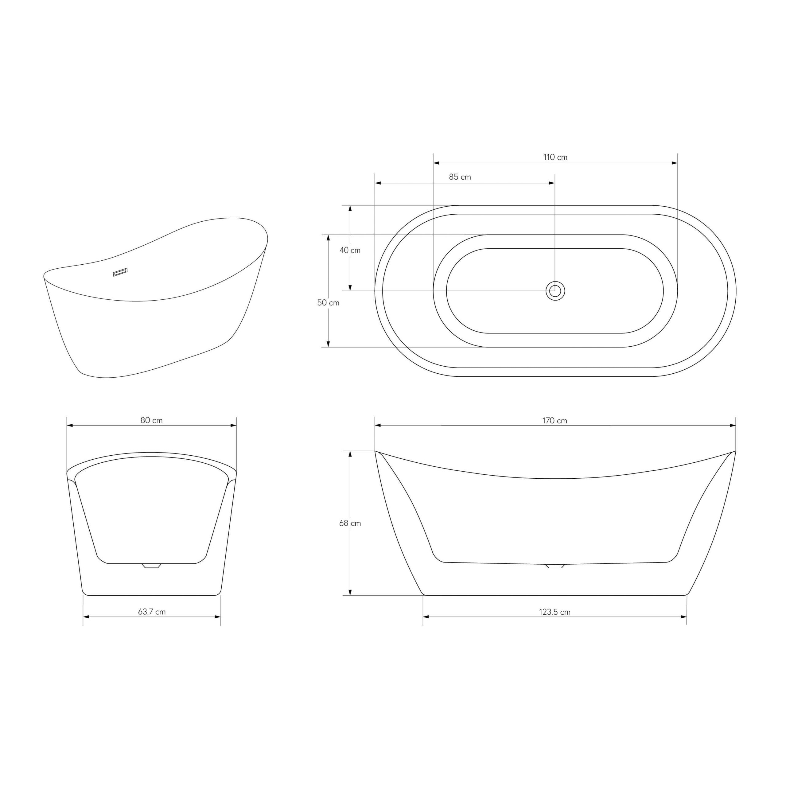 Ovale Badewanne SIENA 2.0 aus Acryl Weiß glänzend – 170 x 80 x 68 cm