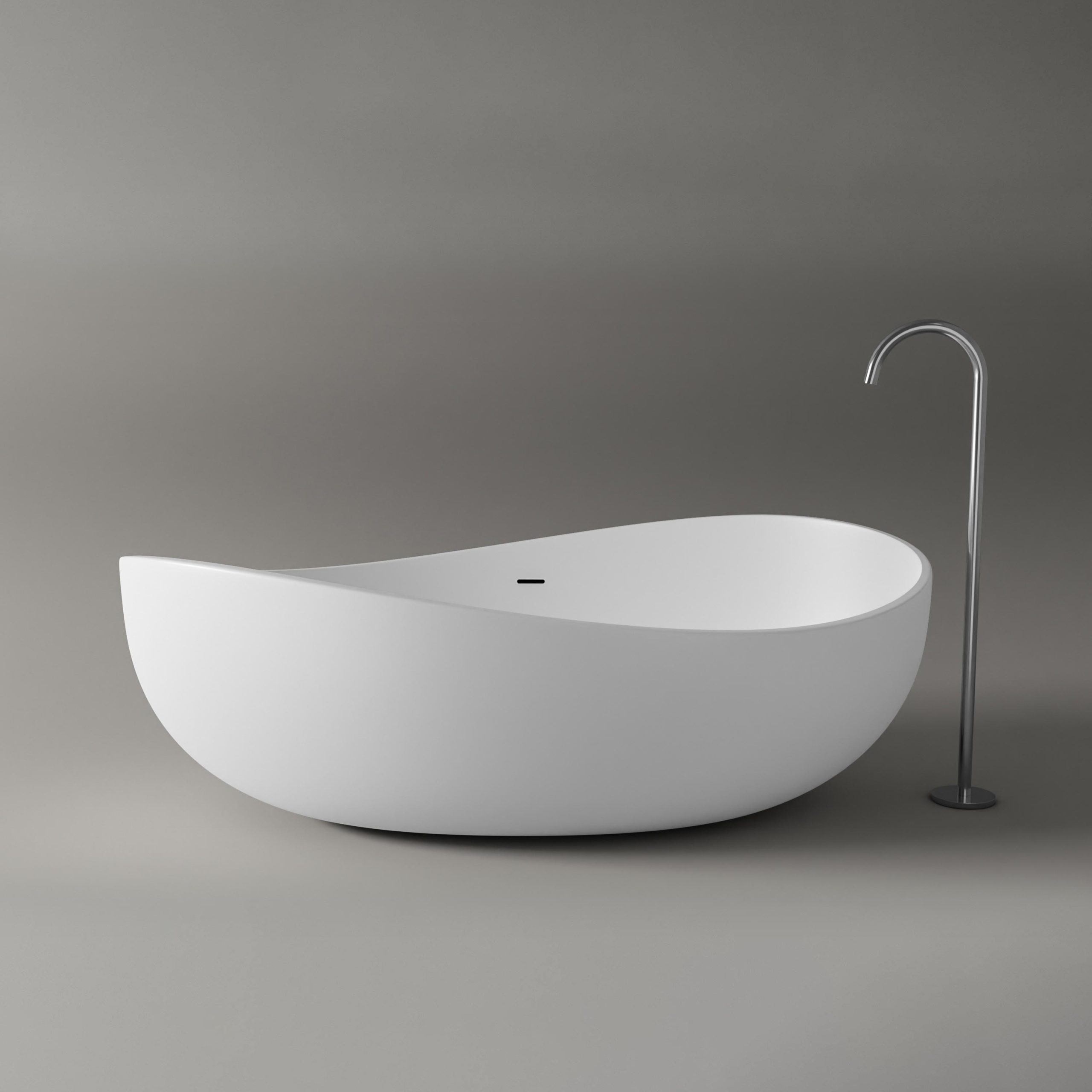 Freistehende Badewanne WAVE STONE aus Mineralguss Solid Stone – in Matt oder Hochglanz