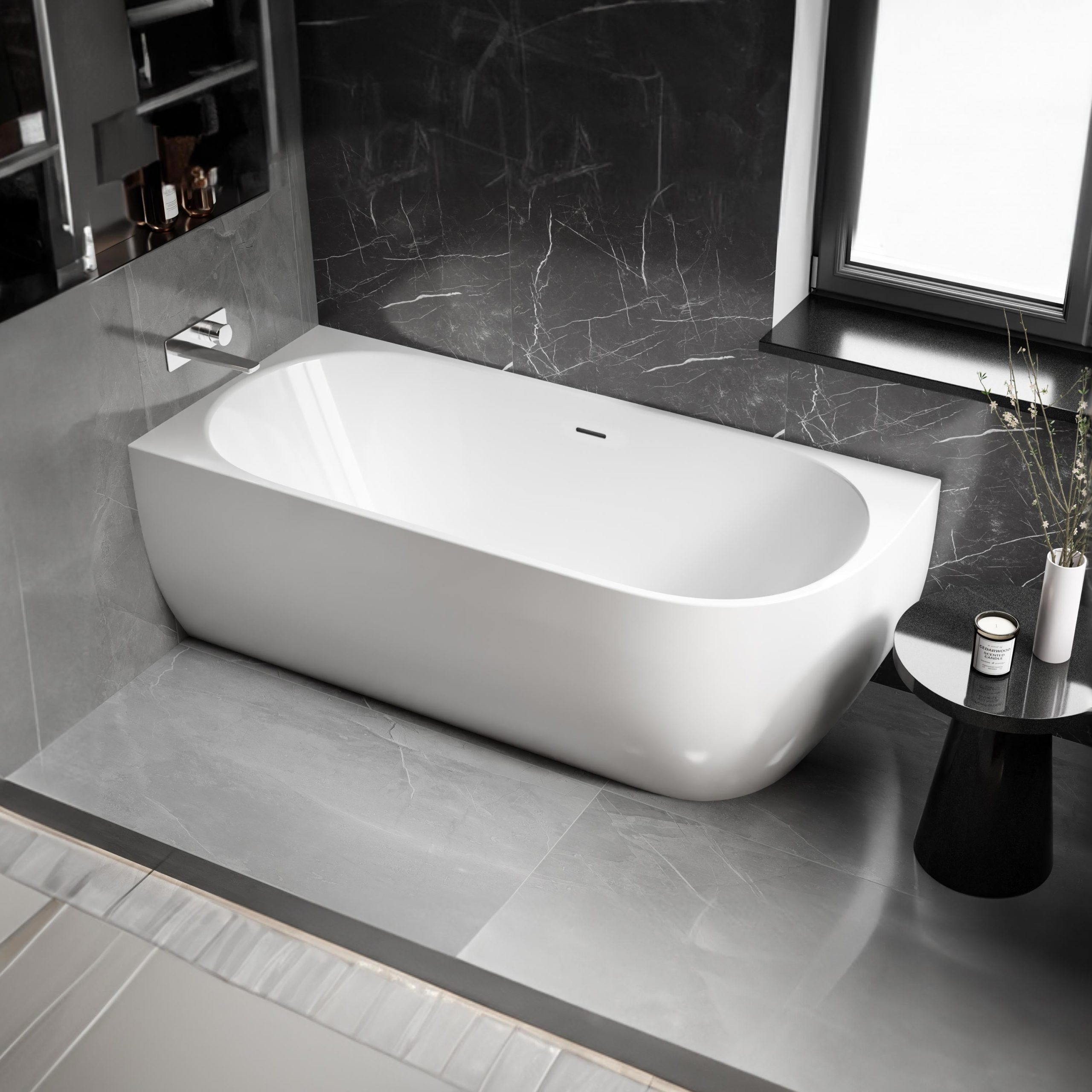 Badewanne LENA CORNER ★ freistehende Raumsparbadewanne für die Ecke – 170x75x60 cm. In Weiß glänzend oder Weiß matt ✔ Mit Pop-up-Ablauf & Ab-/Überlaufgarnitur