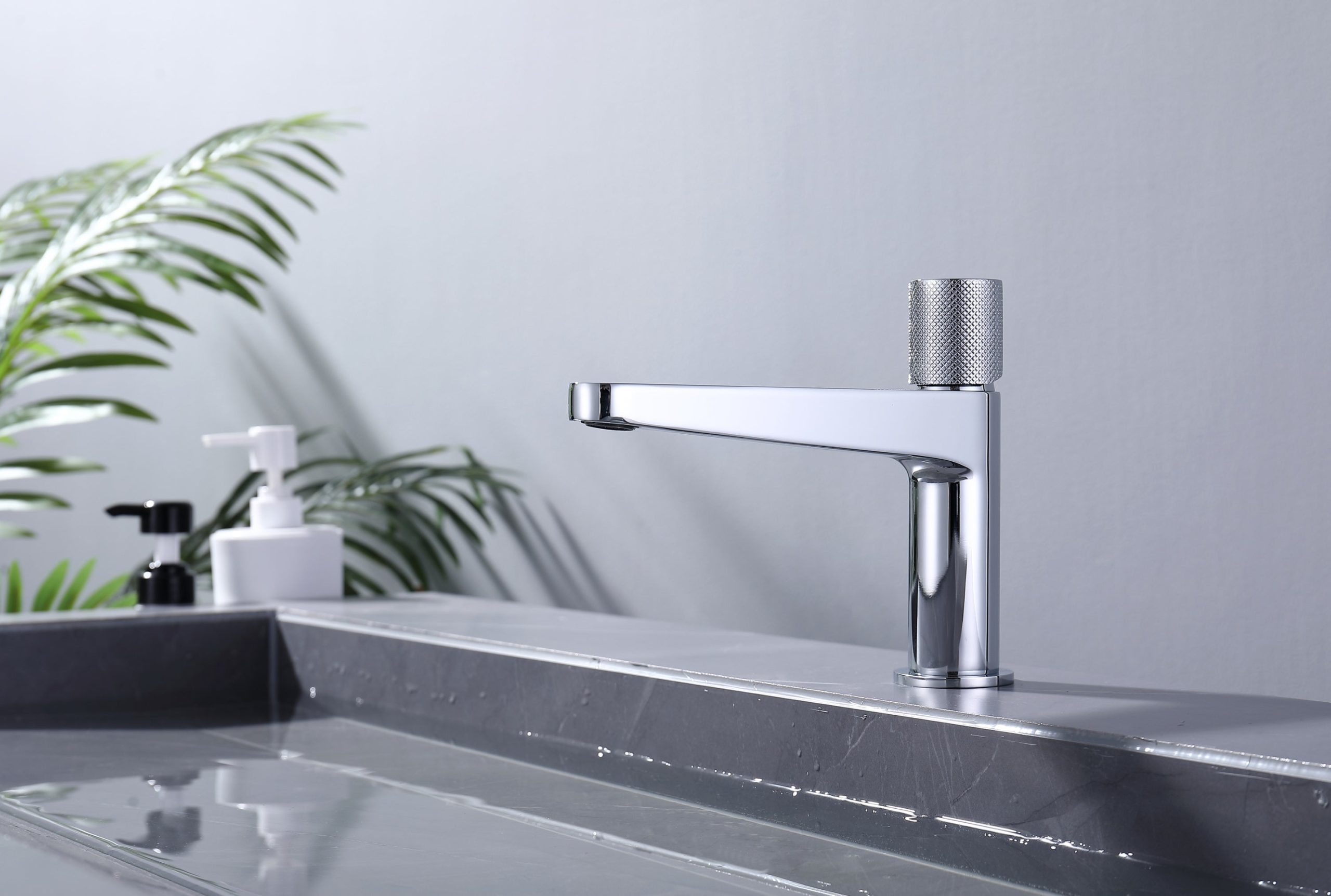 Die Badarmatur lässt sich ganz einfach bedienen und hat dazu ein schickes Design. Der Drehgriff ist hochwertig verarbeitet und hat eine geriffelte Oberflächenstruktur. Dies sorgt für ein einfaches und rutschfestes Betätigen des Drehgriffs, insbesondere mit nassen Händen. Des Weiteren überzeugt die Armatur mit einer soliden Ausstattung – der Neoperl-Strahlregler erzeugt einen weichen, spritzfreien Wasserstrahl und ist wasser- und energiesparend. Die strapazierfähige Keramik-Kartusche arbeitet geräuschlos und ermöglicht eine leichtgängige Bedienung. Flexible Anschlussschläuche sind im Lieferumfang enthalten.