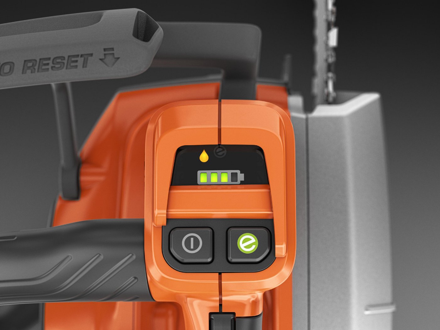 | die Husqvarna Akku-Geräte lassen sich äuerst einfach bedienen – alle erforderlichen Informationen sind zentral auf dem intuitiven Bedienfeld angeordnet. |