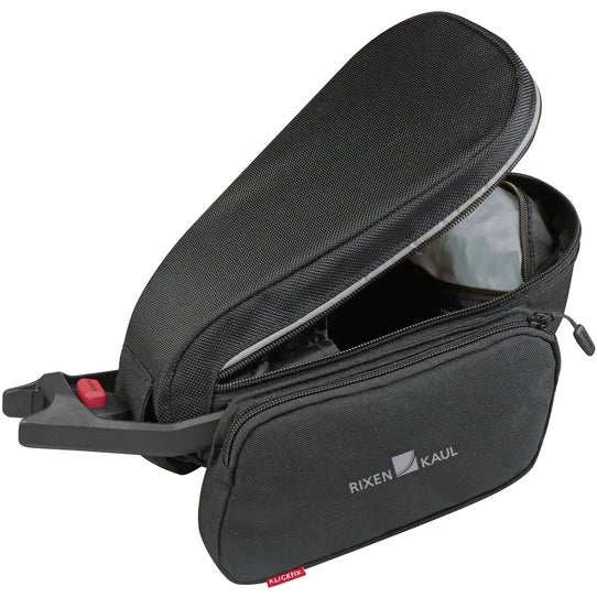 Geräumig und sportlich – kompakte Tasche mit umlaufendem Reißverschluss, Reflektorkeder und zwei geräumigen Seitentaschen. Das Hauptfach ist gepolstert und Kleinteile finden einen sicheren Platz in der Innentasche. Durch die weite Öffnung ist der Inhalt einfach und übersichtlich zu verstauen. Inklusive Lampenhalter. In zwei Befestigungsvarianten zur Montage an Sattelstütze oder Sattel erhältlich.