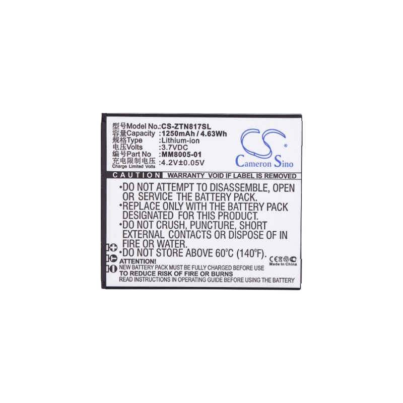 Li-ion Battery fits Zte, quest, quest n817, uhura 3.7V, 1250mAh
