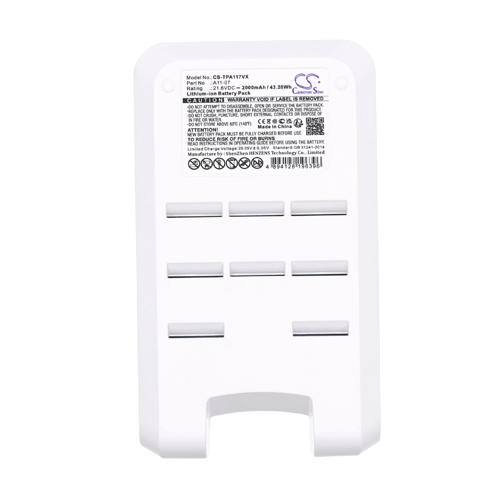 Li-ion, Vacuum Battery fits Tineco A11 Hero, A11 Hero Ex, 21.6V, 2000mAh CS-TPA117VX