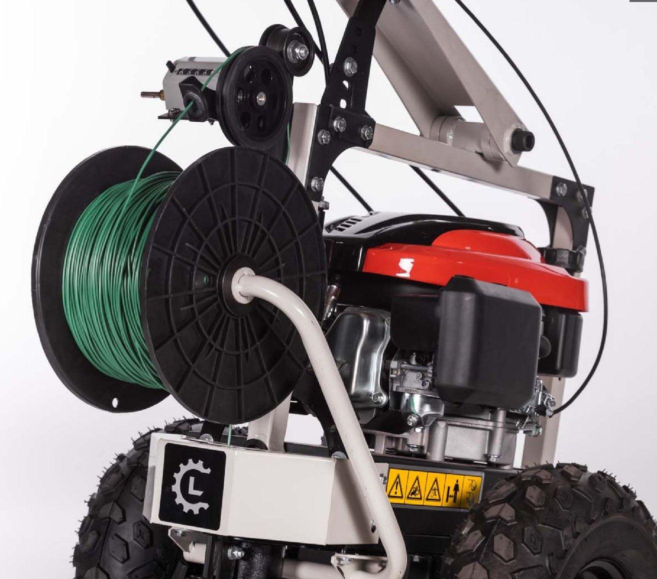 Die Lumag Kabelverlegemaschine KVM-500 ist ein neues Produkt aus eigener Entwicklung und mit eigenem Design. Die benzinbetriebene Maschine mit einem 3,5 kW starken Motor ist die ideale Lösung, um mühsame Kabelverlegungen per Hand, beispielsweise für den Mähroboter zu vermeiden. Der vielseitig verstellbare Lenker ermöglicht es dem Anwender, auch schwer zugängliche Bereiche mühelos zu bewältigen. Die KVM-500 ist mit einem Zähler ausgestattet, um die verlegte Kabellänge zu messen und eine schnelle und präzise Verlegung zu gewährleisten. Das 180° schwenkbare Führungsrad sorgt für hohe Wendigkeit, das bei Bedarf fixiert werden kann. Die robuste Ausführung der Maschine mit Ackerstollenrädern eignet sich auch für härtere Einsätze. Der höhen- und neigungsverstellbare Lenker ermöglicht ein ermüdungsarmes Arbeiten, während das abnehmbare Seitenteil eine einfache Bestückung der Kabeltrommel gewährleistet. Mit der Lumag Kabelverlegemaschine KVM-500 sparen Sie Zeit und Mühe beim Verlegen von Kabeln und erledigen die Arbeit schnell und professionell