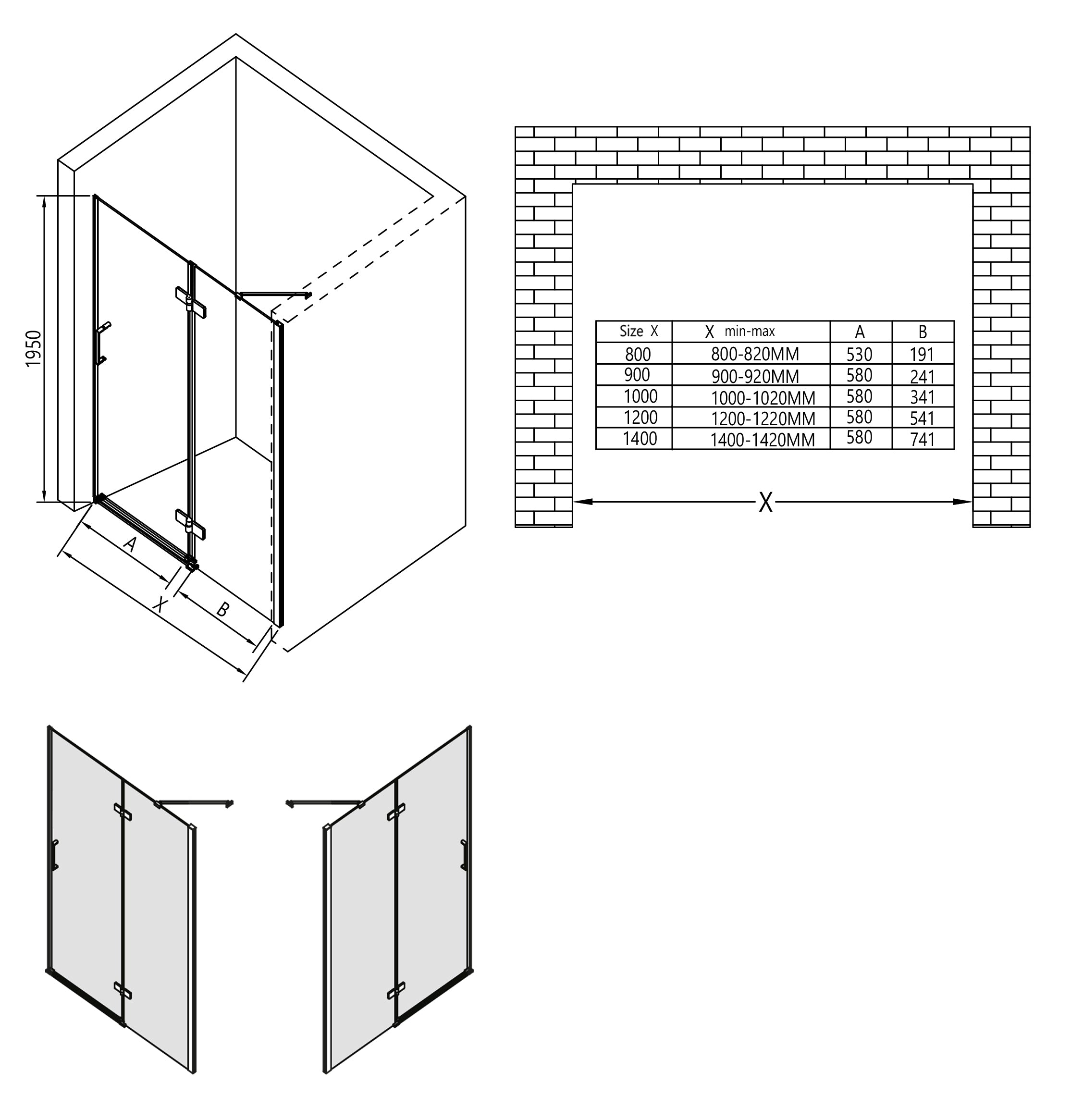 - Nischendusche NT403 Türanschlag links in gewählter Variante