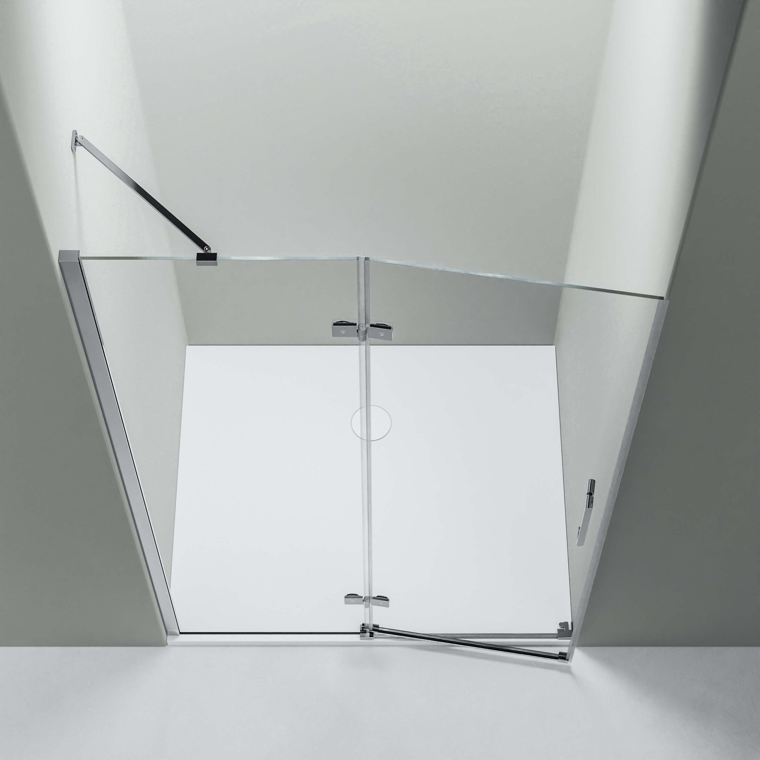 Das ESG-Sicherheitsglas ist mit einer Nano-Beschichtung versehen, sodass das Wasser abperlt. Gemeinsam mit den innen flächenbündig montierten Messingscharnieren werden somit unschöne Schmutz- und Kalkablagerungen verhindert und die Duschwände lassen sich schnell und einfach reinigen. Die Wandprofile erlauben bei Wandunebenheiten einen Wandausgleich von 20 mm.