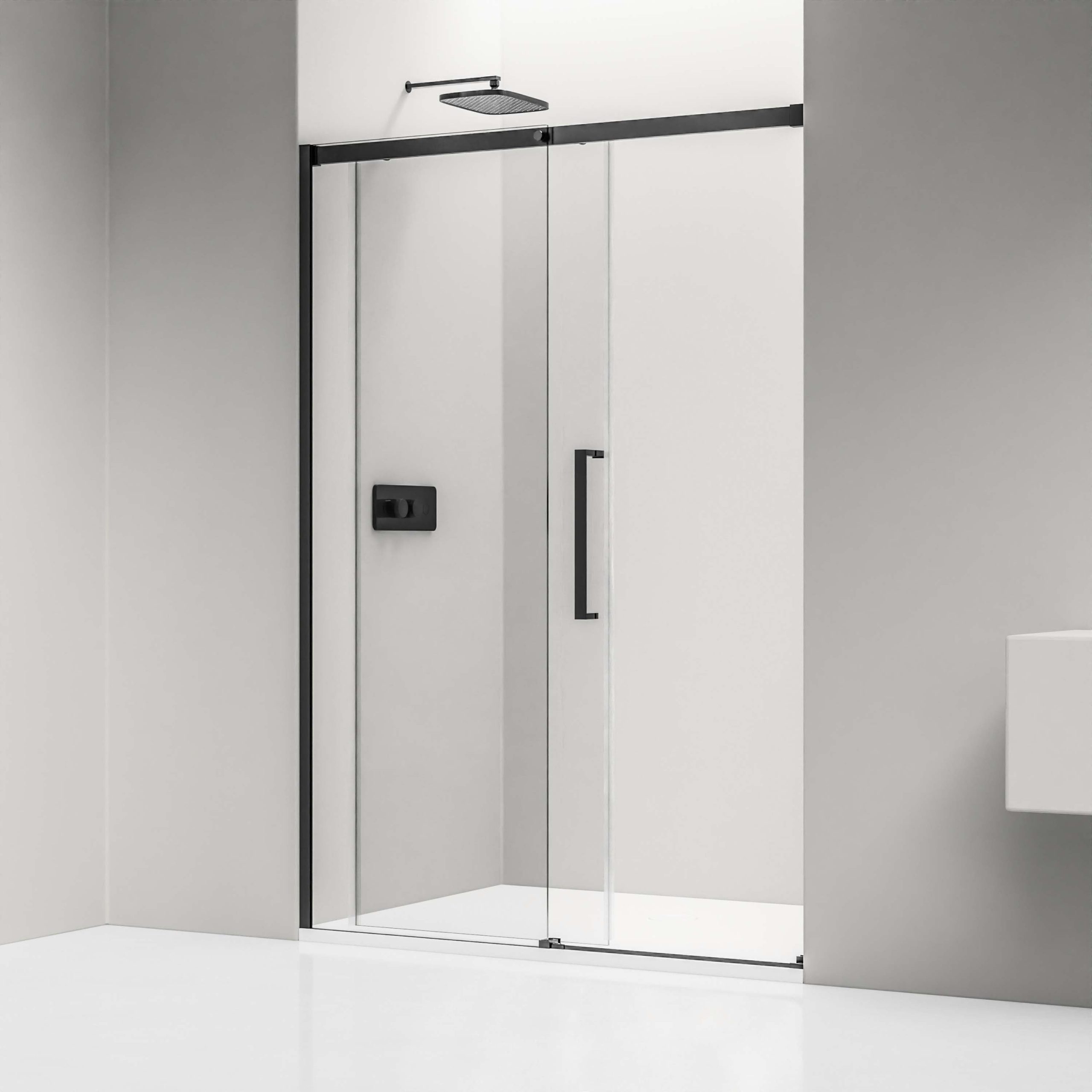 Platzsparende Nischendusche – Profile in Schwarz matt – Elegantes Schiebetür-System mit leiser Soft-Close-Technik!