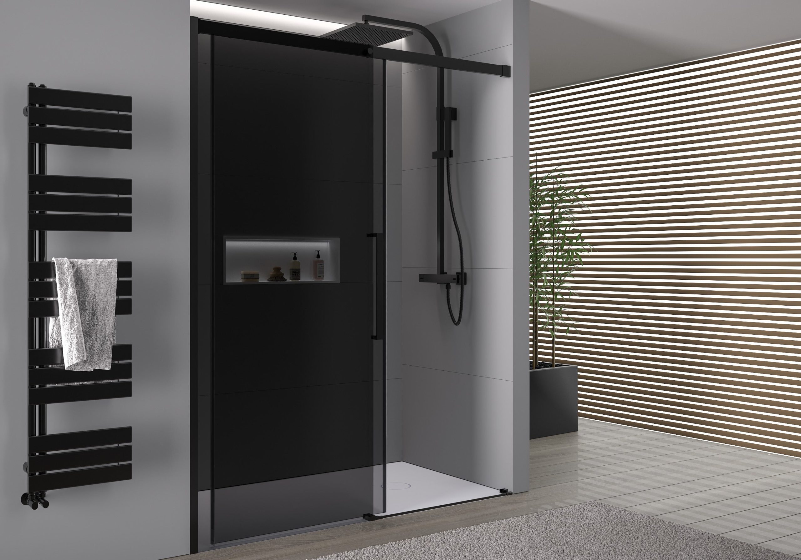 Platzsparende Nischendusche – Profile in Schwarz matt – Elegantes Schiebetür-System mit leiser Soft-Close-Technik!