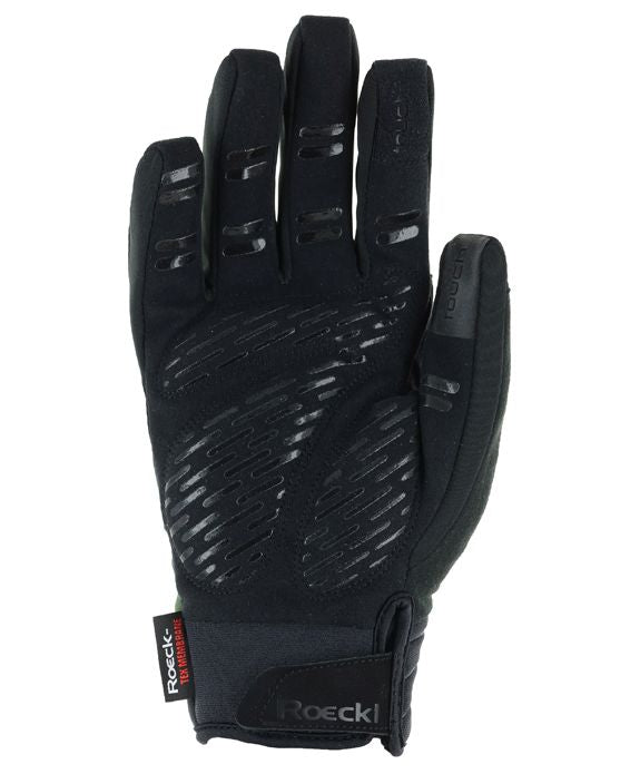 Die großflächig silikonisierte Innenhand aus strapazierfähigem, wasserabweisend ausgerüstetem DURADERO Synthetiksuede ermöglicht einen rutschfesten Griff am Lenker und die feinfühlige Bedienung von Schaltung und Bremsen. Die Oberhand wurde aus ROECK-PROOF® Atlas gefertigt, ein PFC-frei ausgerüstetes 3-Lagen-Softshell-Gewebe, das jede Bewegung der Finger und Hände elastisch mitgeht und zudem zuverlässig wärmt.