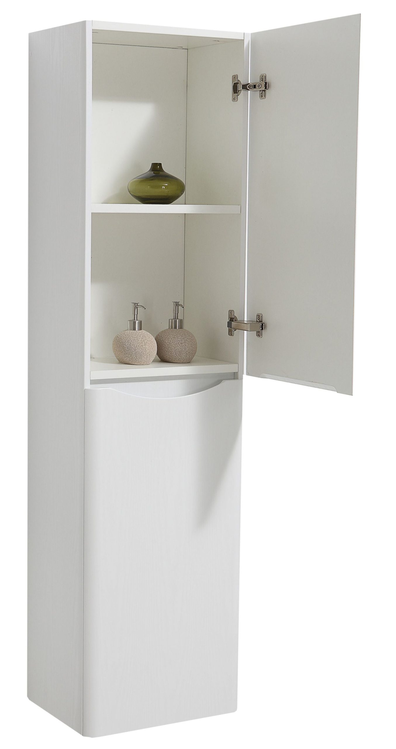 Die Höhe von 150 cm sowie zwei Ablageböden bieten ausreichend Stauraum für Handtücher und diverse Badutensilien. Über die Artikelvariante ist ein Schrank mit Türöffnung nach rechts bwz. nach links wählbar. Langlebige Metallscharniere und leise Soft-Close-Technik zeichnen diesen Schrank aus.