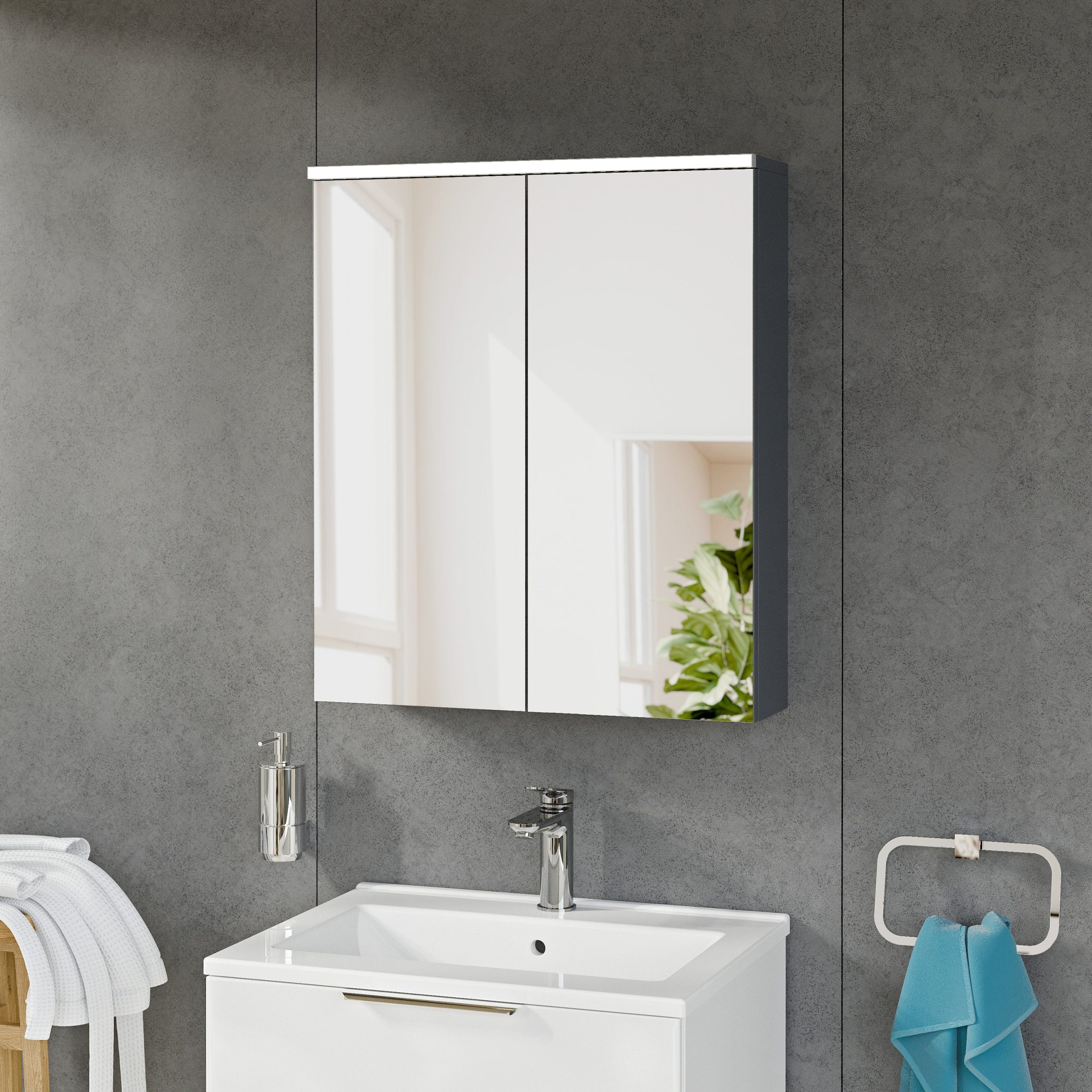 Spiegelschrank SOLO mit LED-Beleuchtung – 60 cm – 2 Türen – Farbe wählbar
