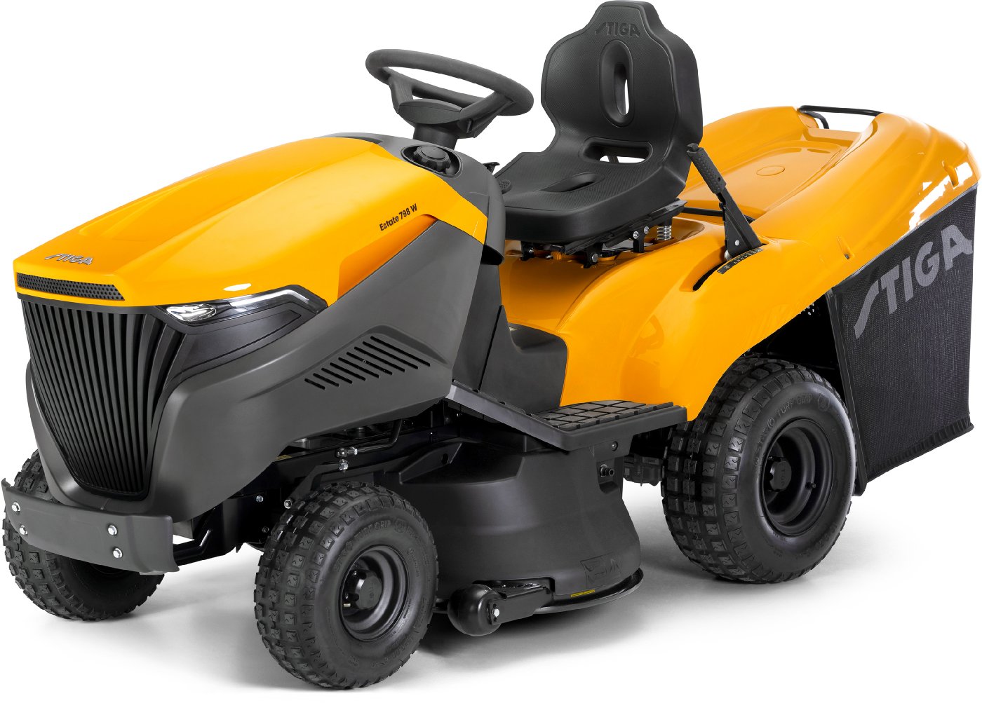 | Die serienmäßig im Lieferumfang enthaltene robuste Stoßstange schützt verlässlich die Motorhaube des Rasentraktors |