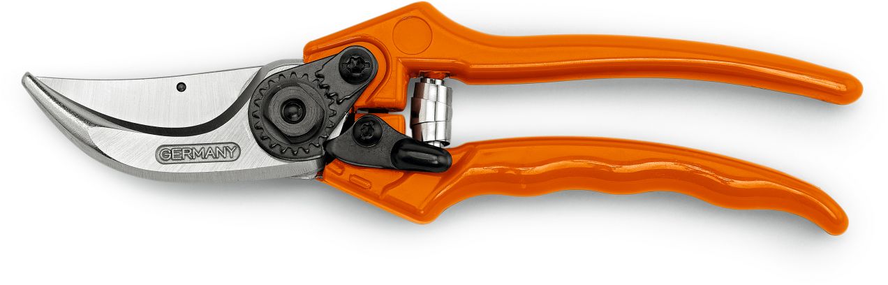 21,5 cm, 255 g, Ast-Ø bis 20 mm. Voll geschmiedetes, verchromtes Komfortmodell. Leicht austauschbare Klinge mit Drahtschneider, Gegenklinge mit Saftrille.