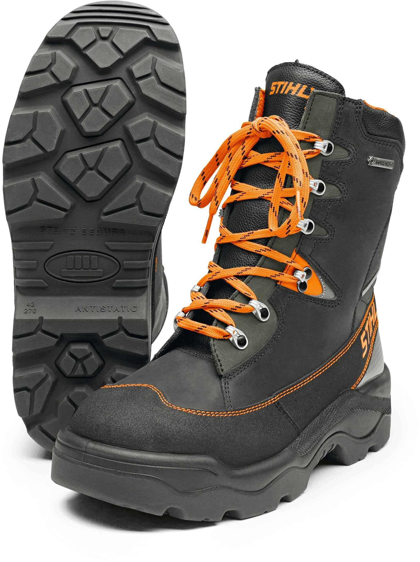 Der Schnittschutz in den Sicherheits-Schnürstiefeln verläuft über den gesamten Vorderfuß einschließlich der Zunge. |