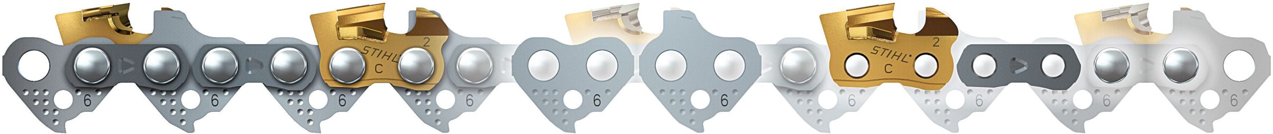 Dank der Hartmetall-Aufpanzerung ist die 3/8 Zoll-Sägekette mit einer Treibglieddicke von 1,6 mm extrem robust. Selbst bei sehr hoher Belastung oder bei Kontakt mit stark verschmutztem Holz behält die Motorsägenkette ihre Schärfe bis zu 10-mal länger als herkömmliche Sägeketten.