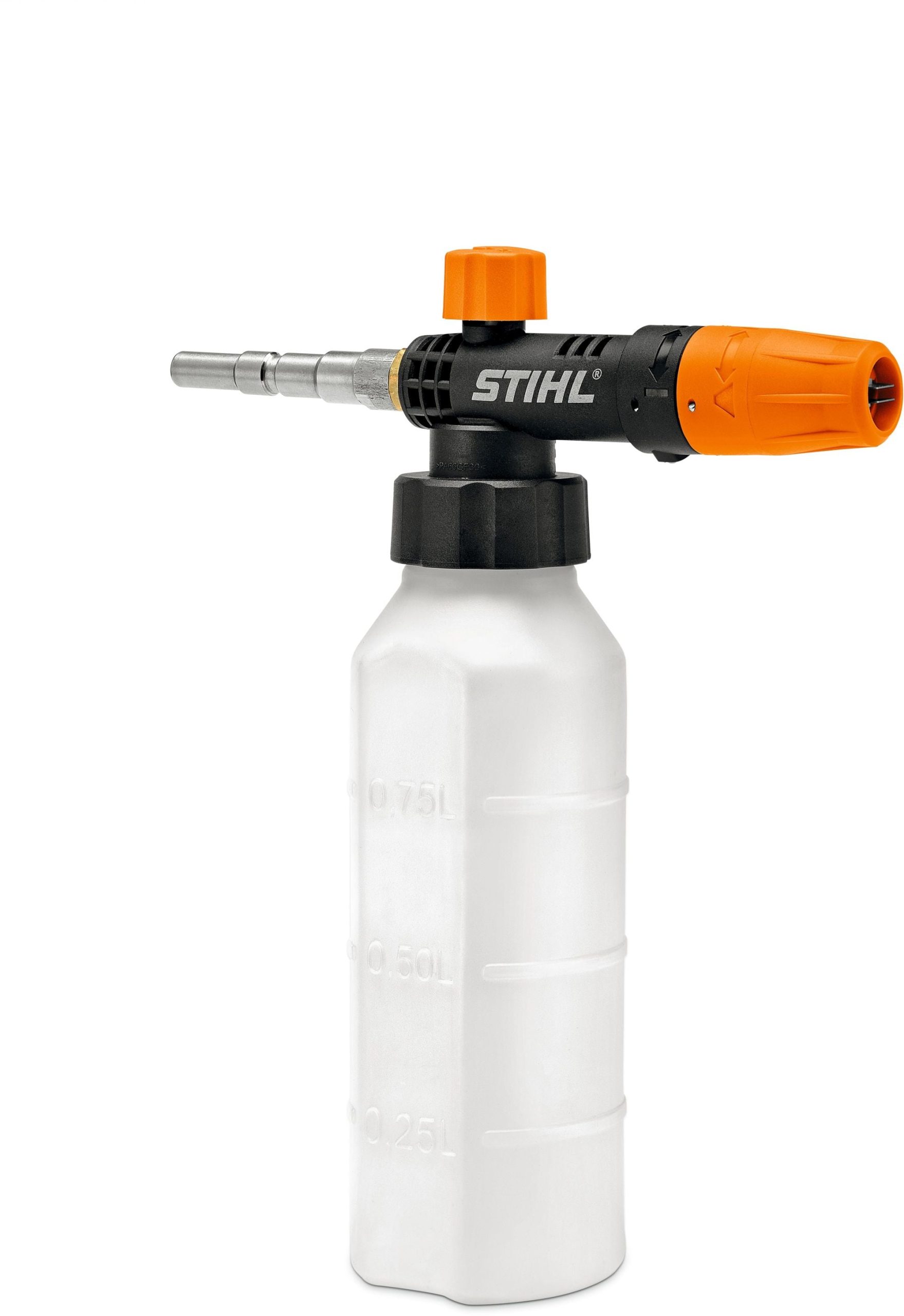 Mit Hilfe der STIHL Schaumdüsen können anspruchsvolle Privatanwender und Profis bei Reinigungen mit ihrem STIHL Elektro-Hochdruckreiniger die Reinigungsleistung für hartnäckige Verschmutzungen erhöhen. Die STIHL Schaumdüse können Sie dazu mit dem Strahlrohr verbinden und so dem Wasserstrahl zusätzlich Reinigungsmittel zuführen. Je nach Reinigungsaufgabe können Sie an der STIHL Schaumdüse die Richtung und den Winkel des Sprühstrahls von vertikal bis horizontal einstellen.