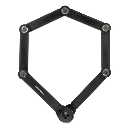 Das FS 580 ist unser stärkstes Faltschloss der Serie. Besonderer Clou ist aber die Rückseite des Halters: Hier lässt sich unauffällig und sicher ein Apple AirTag oder ein Samsung SmartTag verstecken. Mit den Tags kann das Fahrrad ohne großen Aufwand über das Smartphone getrackt werden. Die gummierten Glieder aus gehärtetem Stahl lassen sich bis zu 90 cm Länge entfalten. Das Anschließen eines Fahrrads an einem stationären Objekt ist sehr einfach. Für bequemes Abschließen ist das Schloss mit einem um 360 Grad drehbaren Einführbereich am Schlosskopf und einem wendbaren Schlüssel ausgestattet. Der IN-X® Zylinder wird durch eine Abdeckung vor Staub und Schmutz geschützt. Die 90 cm Version wird mit der neuen X-PRESS Halterung geliefert. Der neue Verriegelungsmechanismus der X-PRESS Halterung erleichtert das Entfernen und Einsetzen des Schlosses noch mehr. Um das Schloss zu entfernen, drücken Sie den roten Knopf und das Schloss wird freigegeben. Um das Schloss wieder in der Halterung zu sichern, drücken Sie einfach die Halterungen zusammen