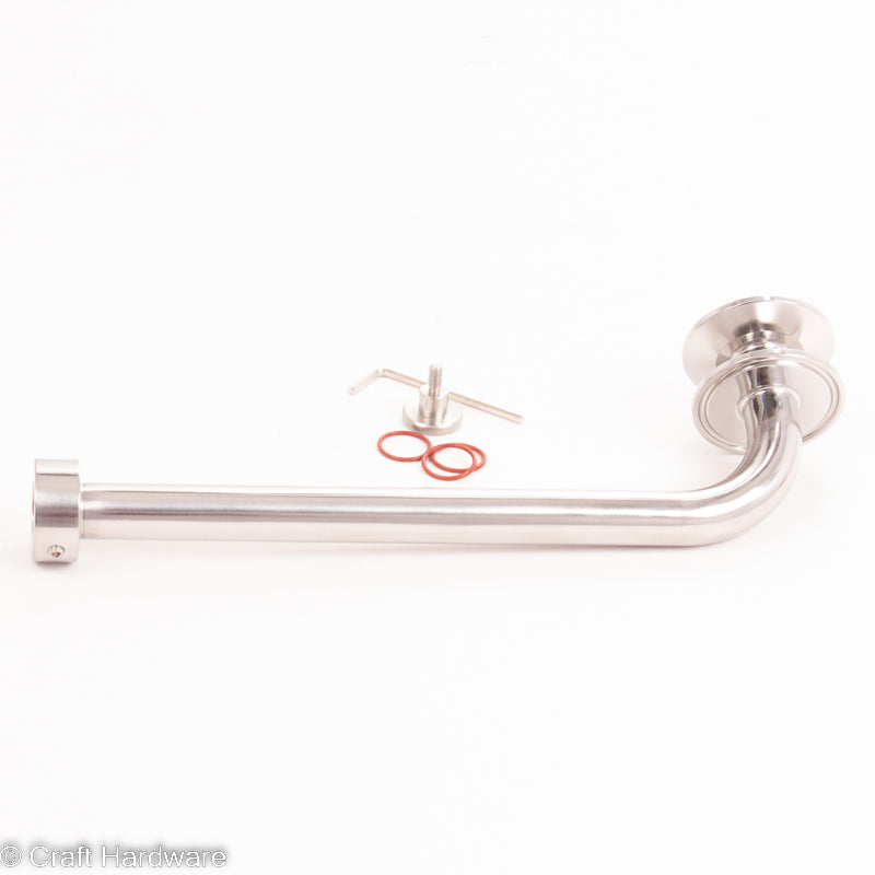 Mit einer zweiteiligen Whirlpool-Arm-Lösung kannst du einen Whirlpool-Arm in den oberen Anschluss deines Craft Hardware Kessels installieren. Das zweiteilige Design erlaubt es, das untere Rohr für einen optimalen Rücklaufwinkel zu drehen.
