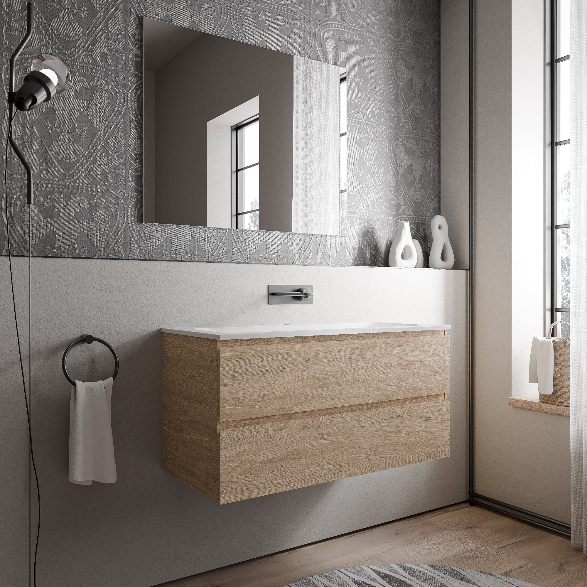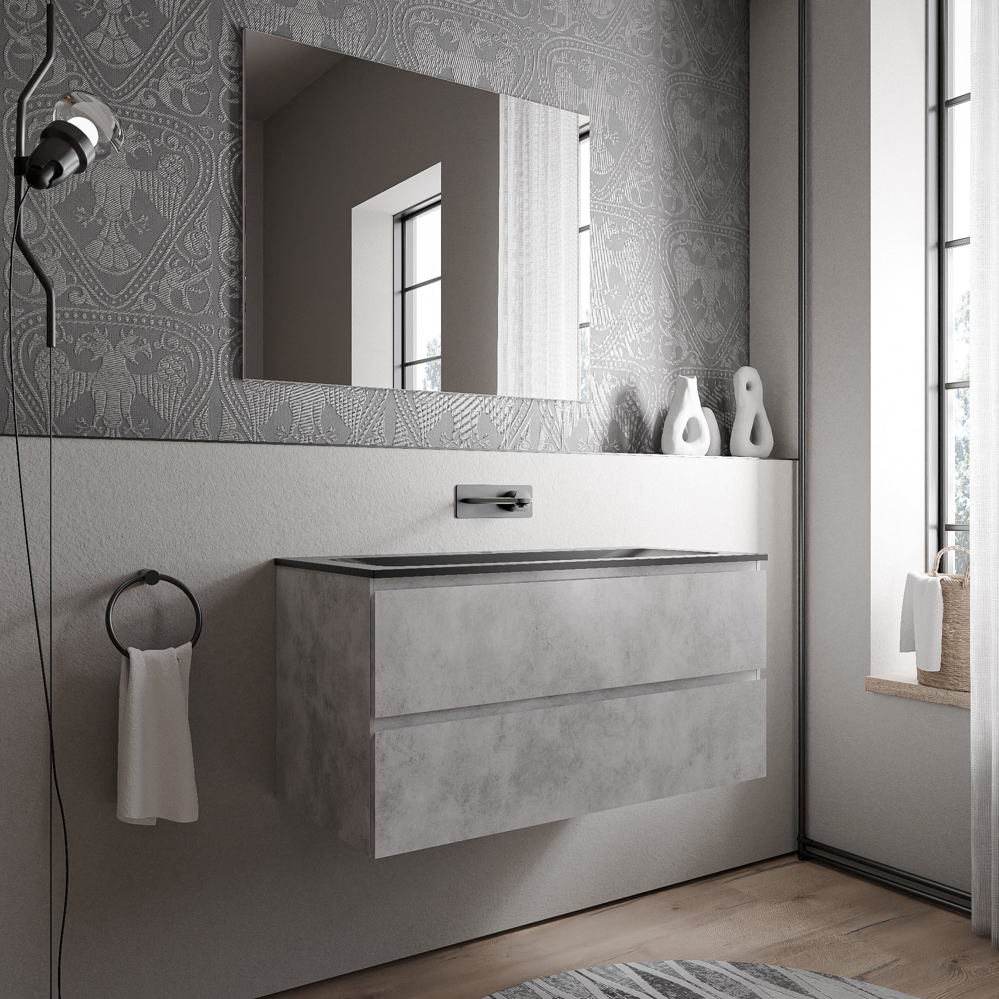 Unterschrank AVA 100cm mit Mineralguss Waschbecken BRUXELLES – Farbe wählbar