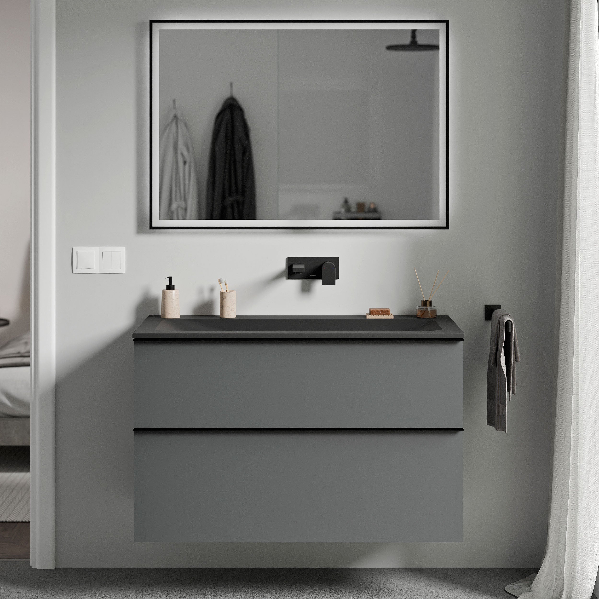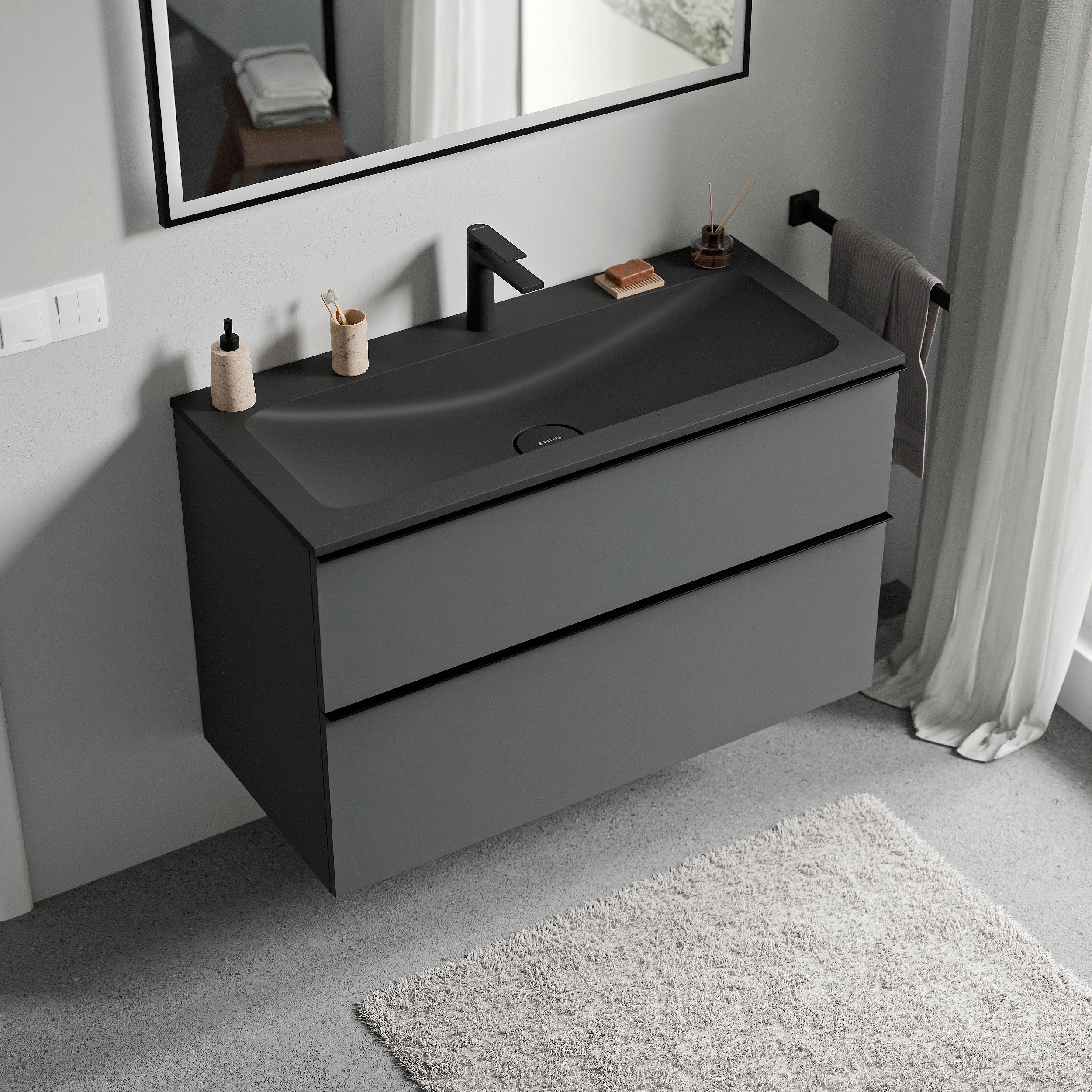 Unterschrank LAVOA 100cm mit Mineralguss Waschbecken CREAM – Farbe wählbar