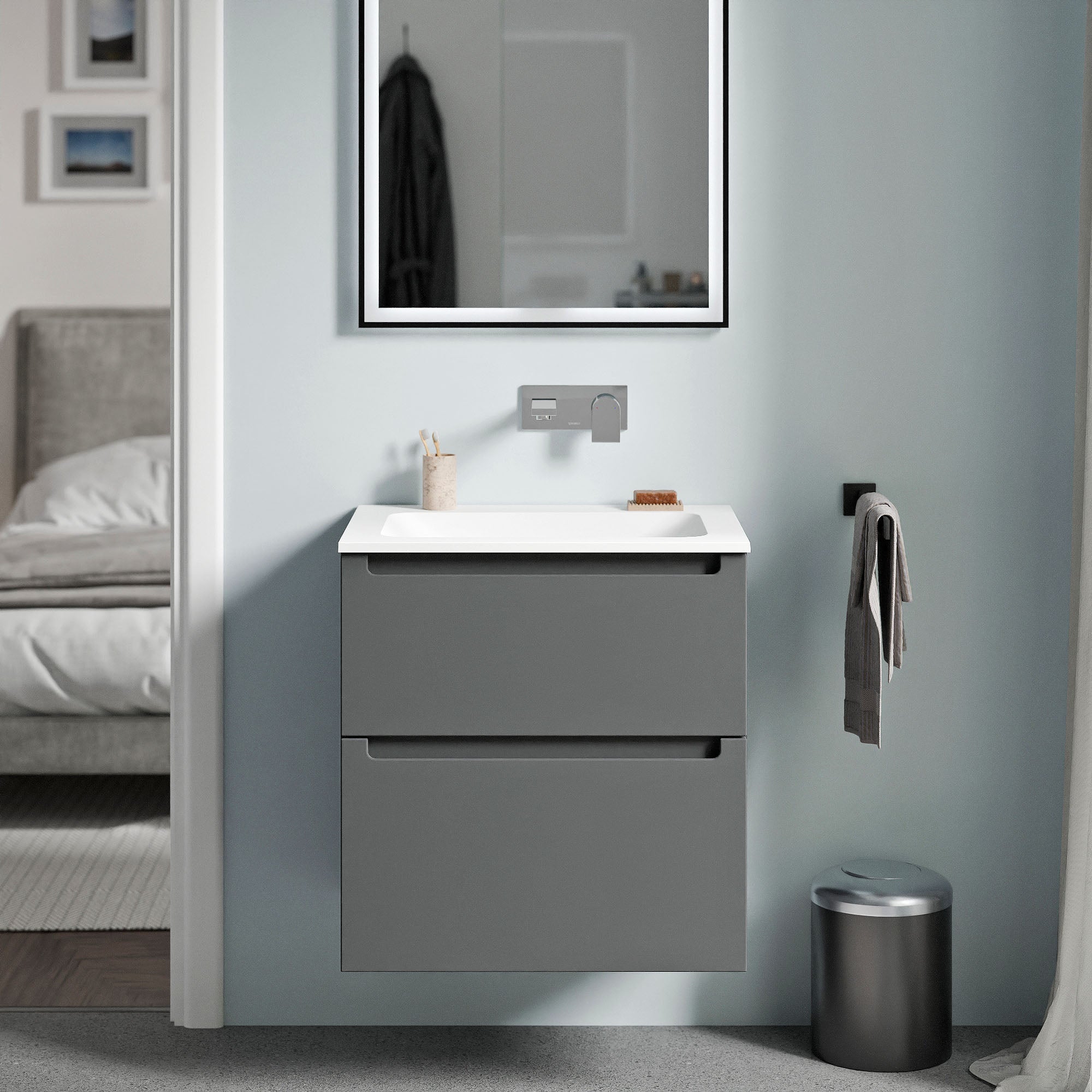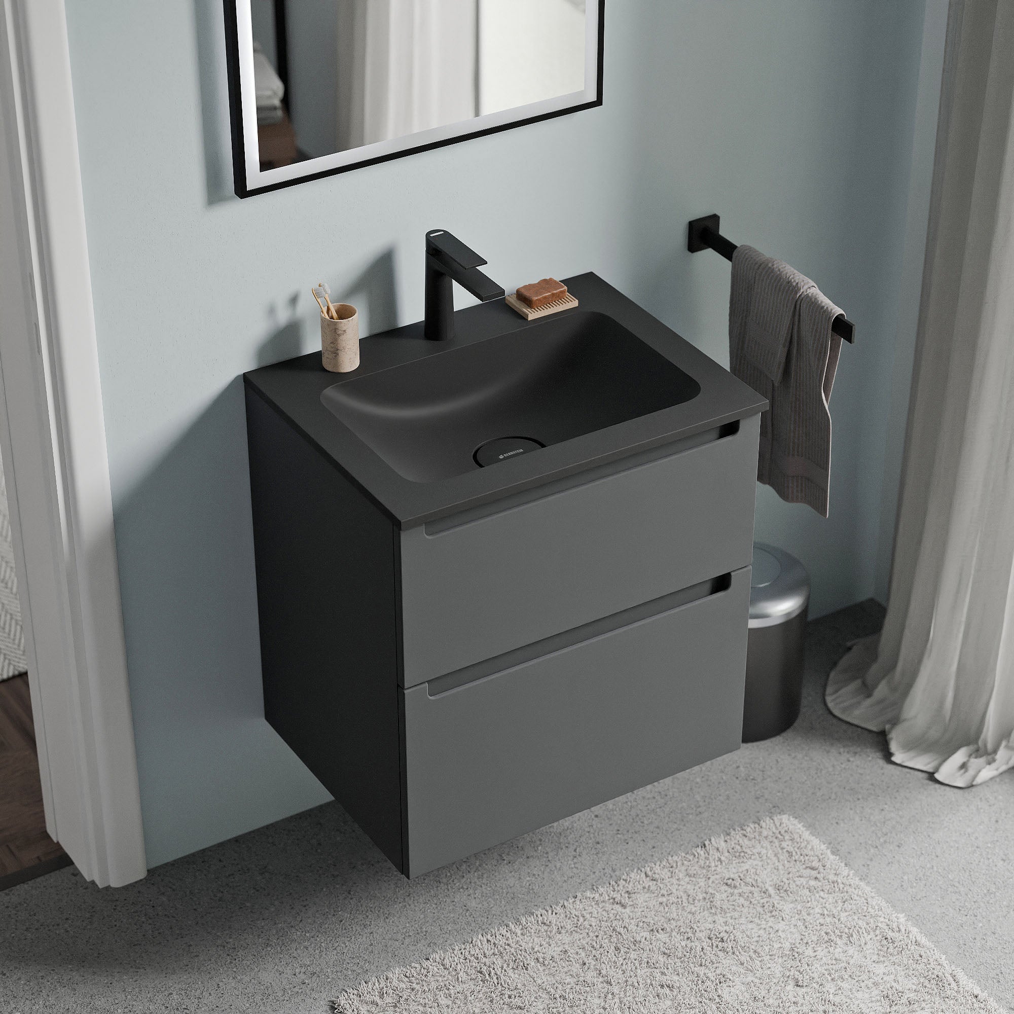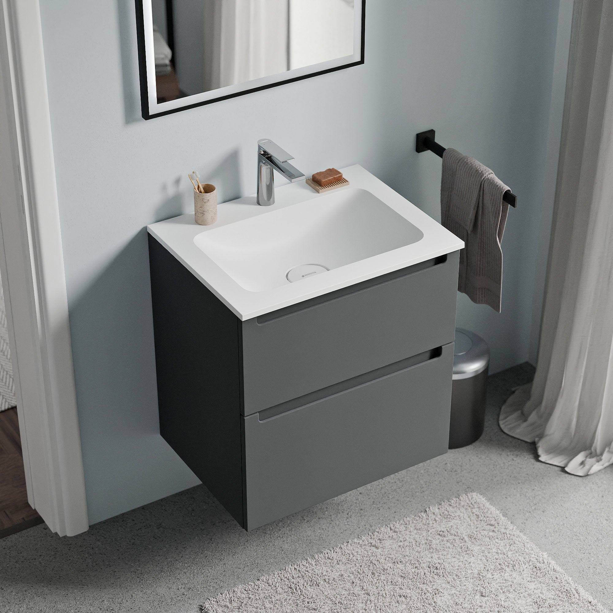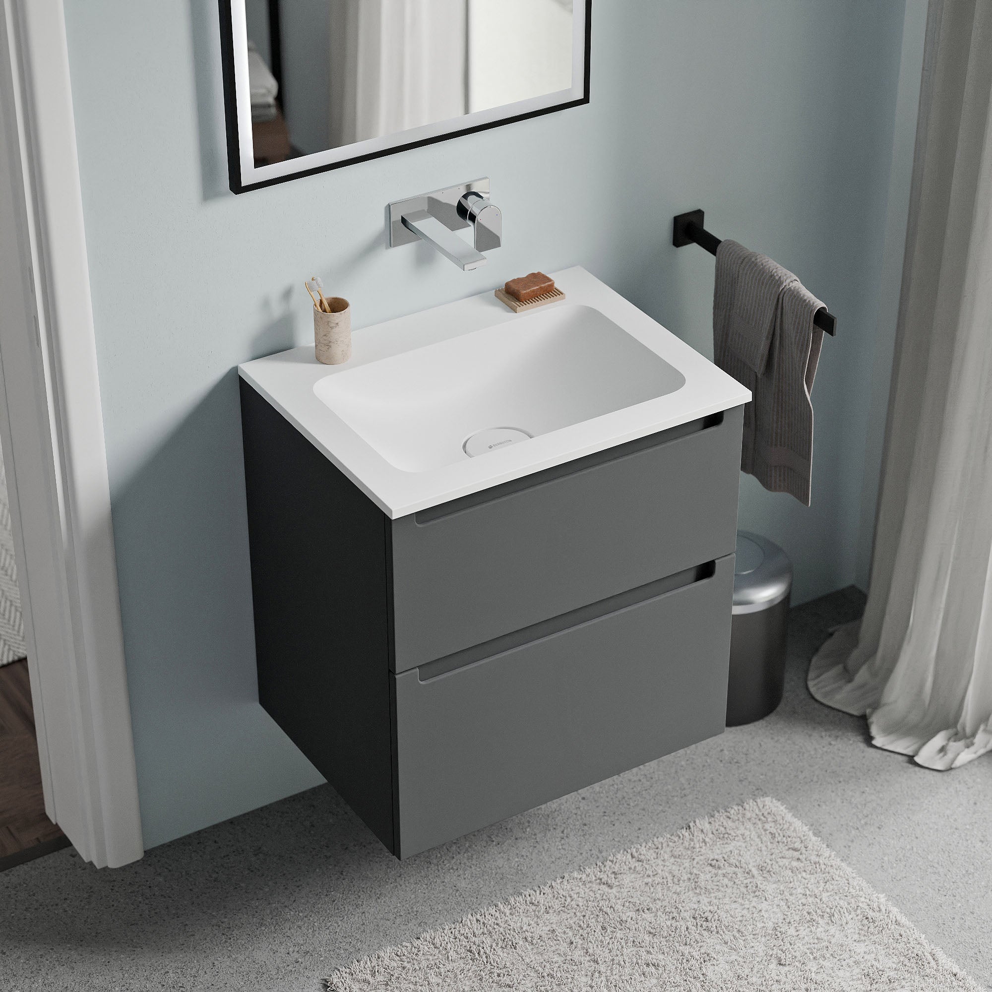 Unterschrank VIREO 60cm mit Mineralguss Waschbecken CREAM – Farbe wählbar