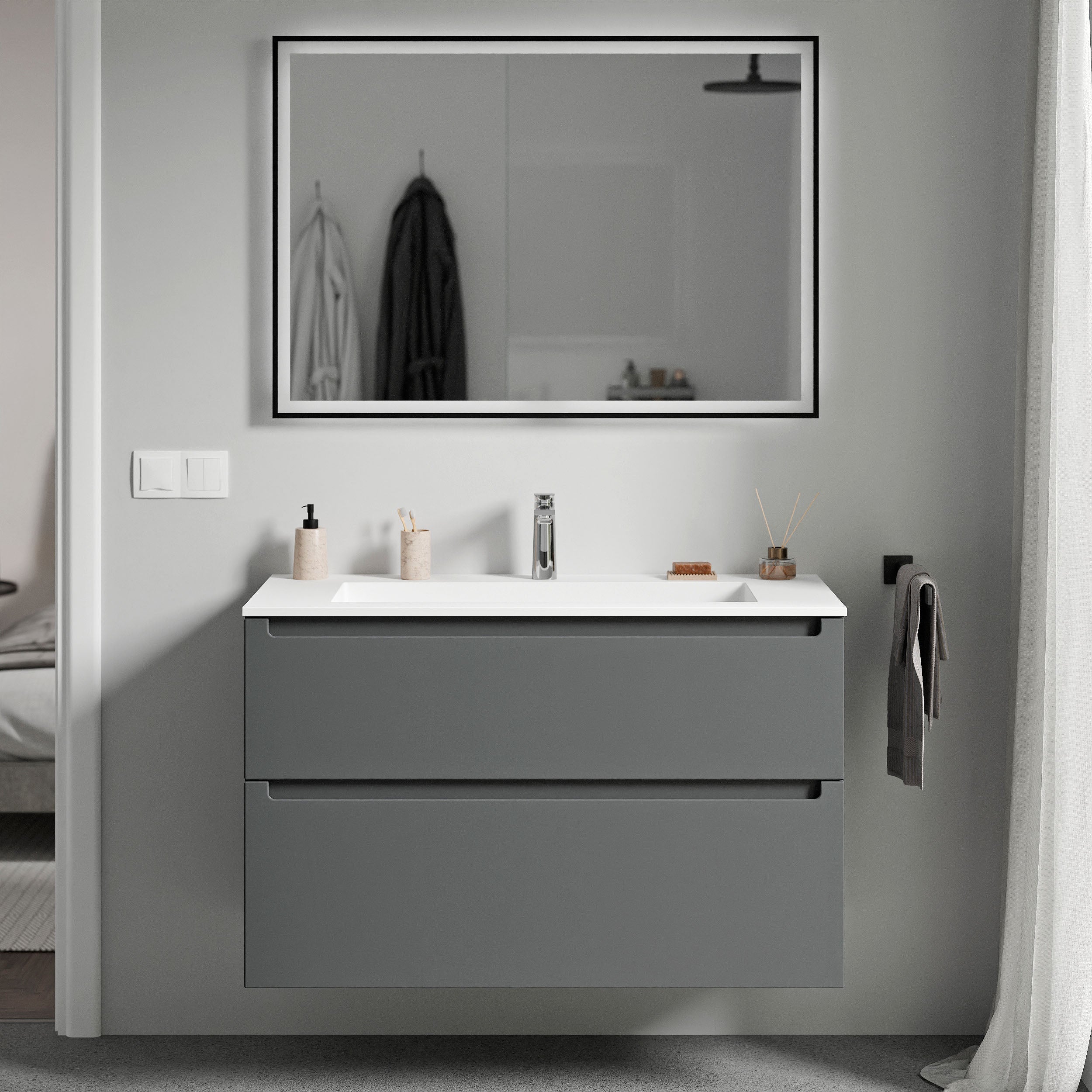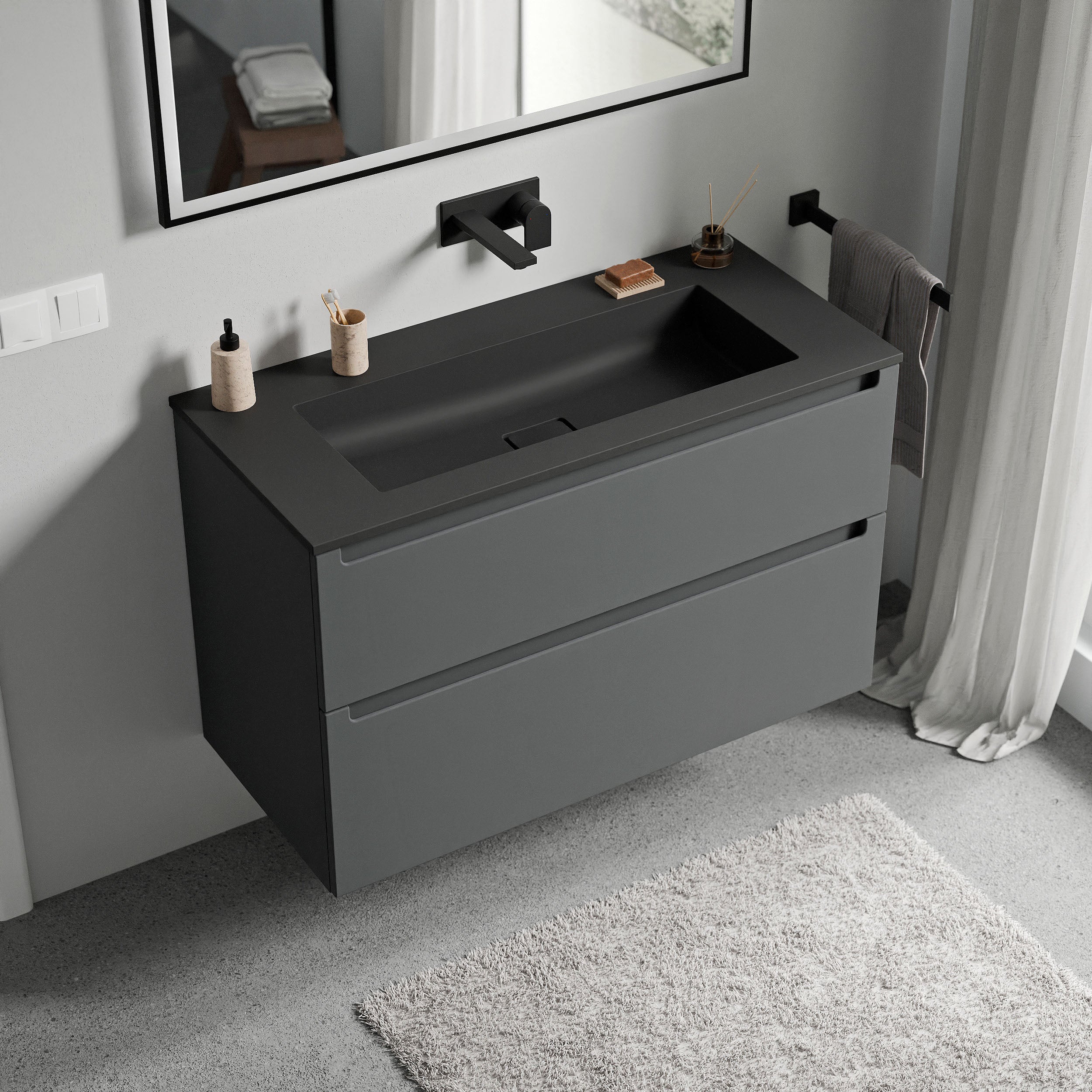 Unterschrank VIREO 80cm mit Mineralguss Waschbecken BRUXELLES – Farbe wählbar