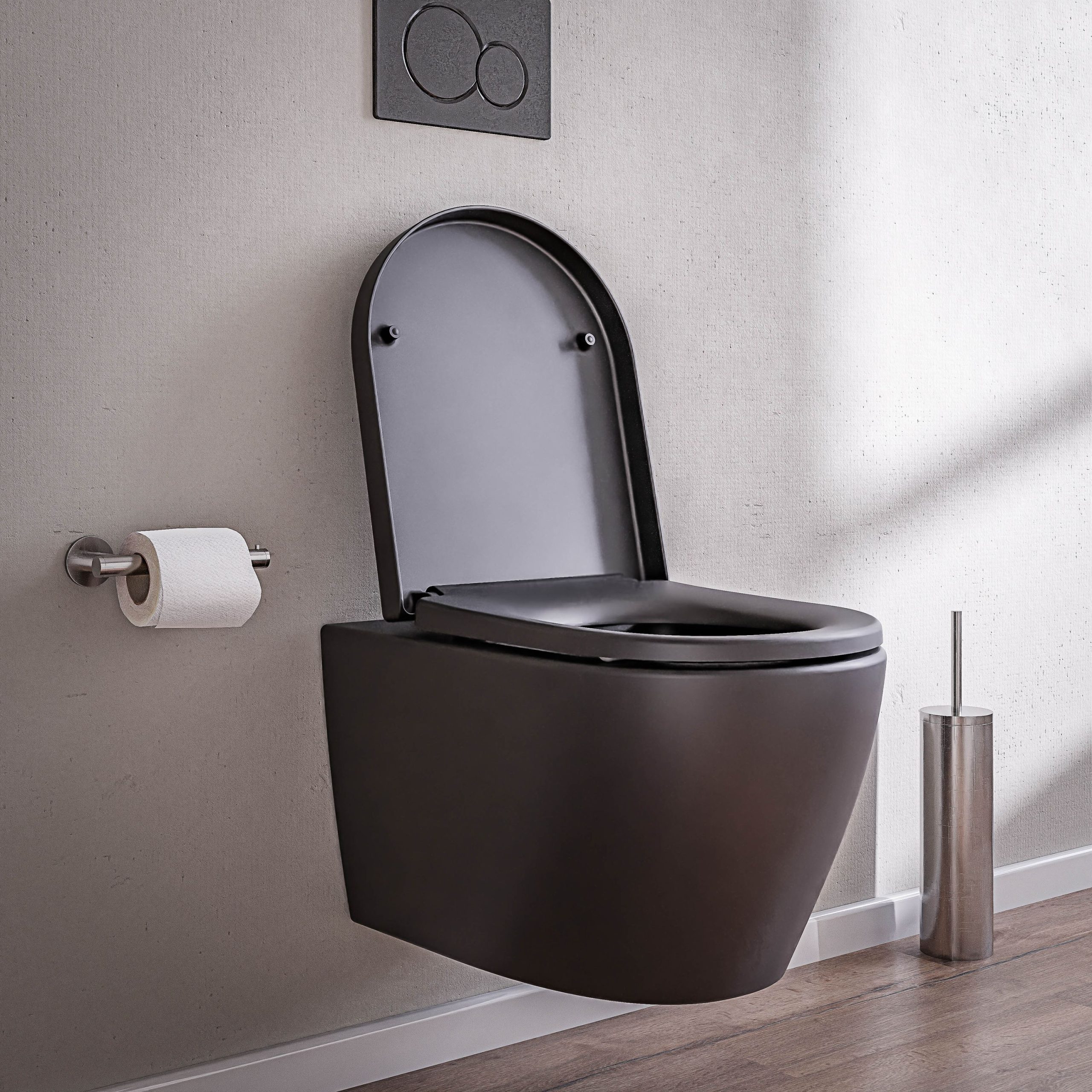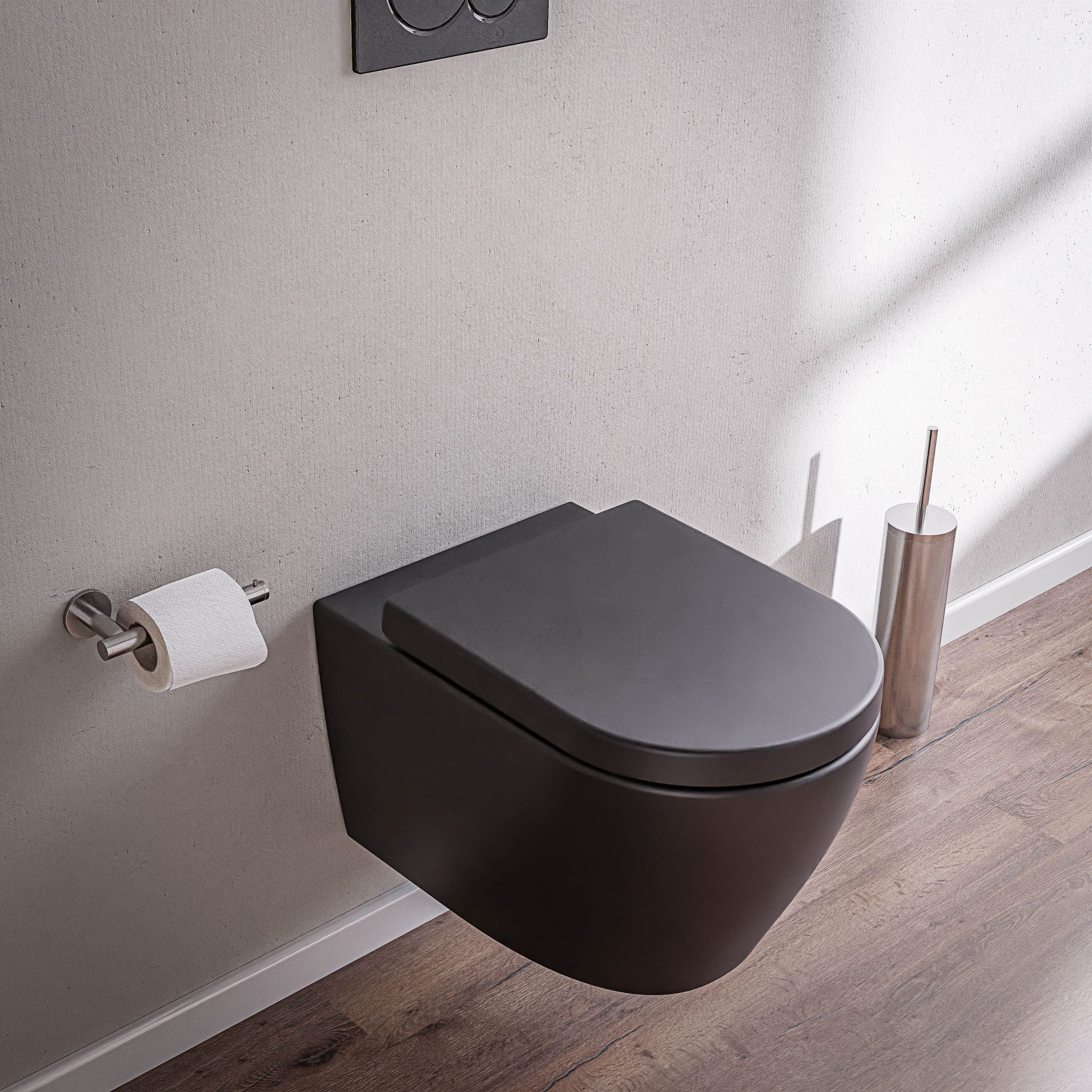- Modernes Hänge-WC mit schwarz matter Oberfläche