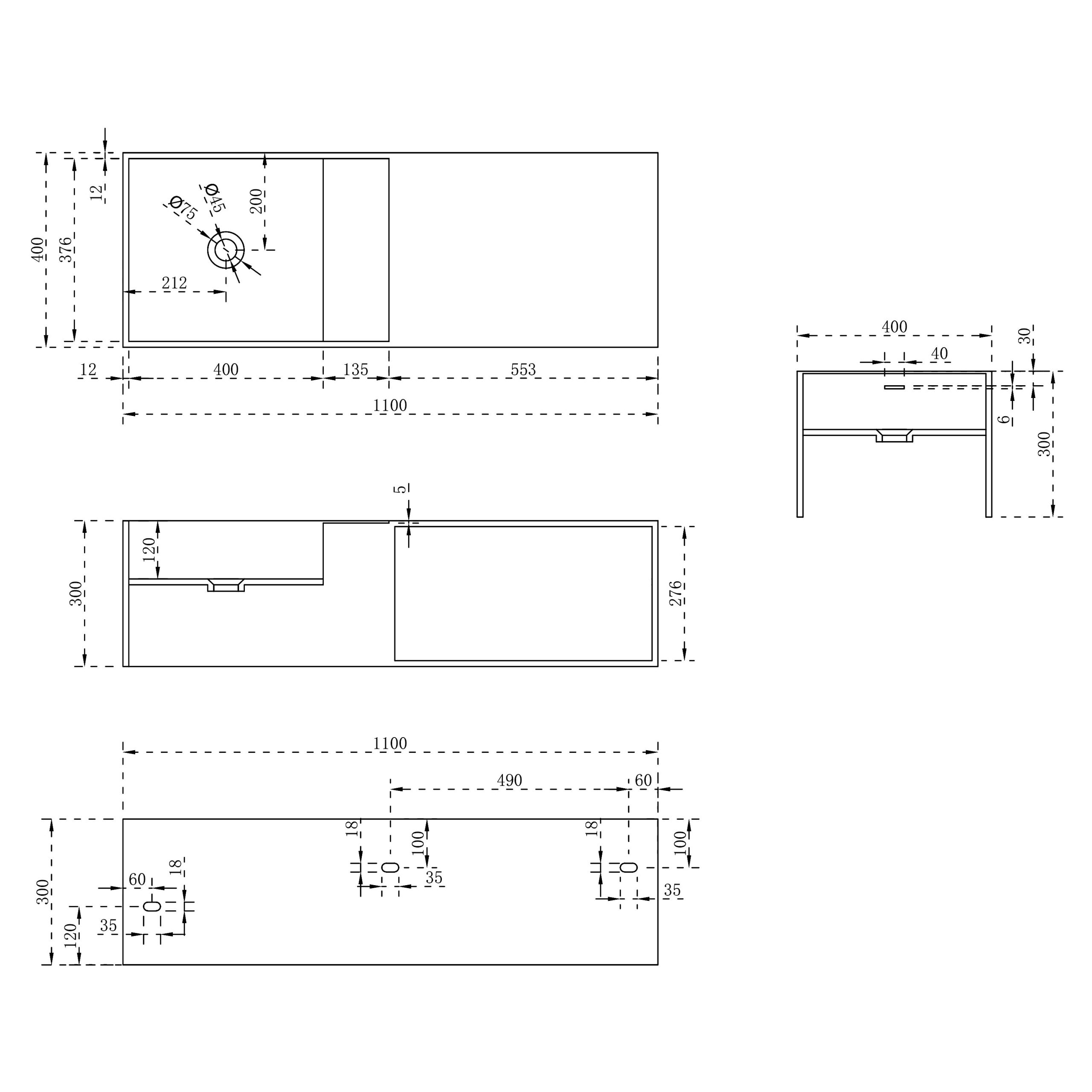 | Geeignet für Aufsatz- und Unterputzarmatur (Armaturloch nicht vorgebohrt) |